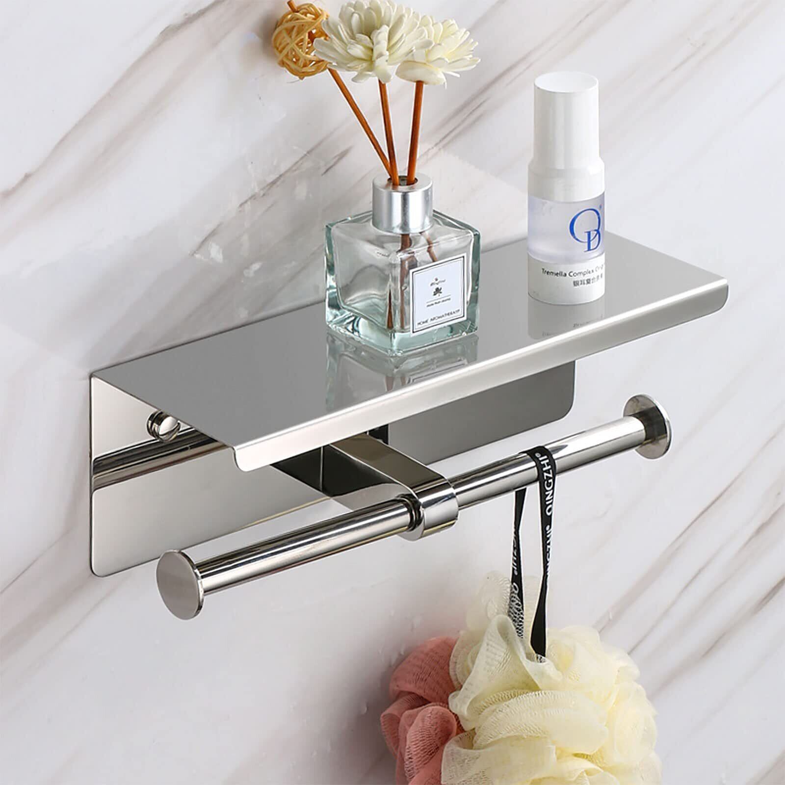 1.SUS304ステンレスを使用した、シンプルでスタイリッシュなトイレットペーパーホルダーです。トイレットロール2個と組み合わせ可能です。スマートフォンを置くための小テーブル付き。
