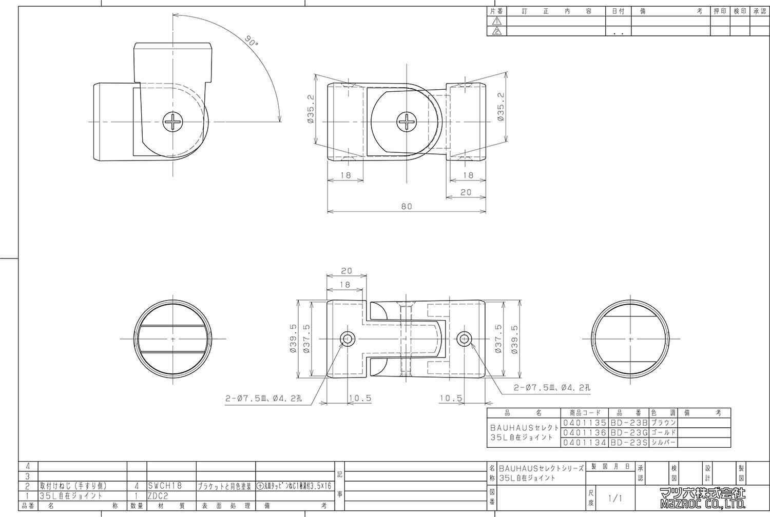 【新着商品】マツ六 手すり部材 BAUHAUS セレクト 35L自在ジョイント BD-23B ブラウン