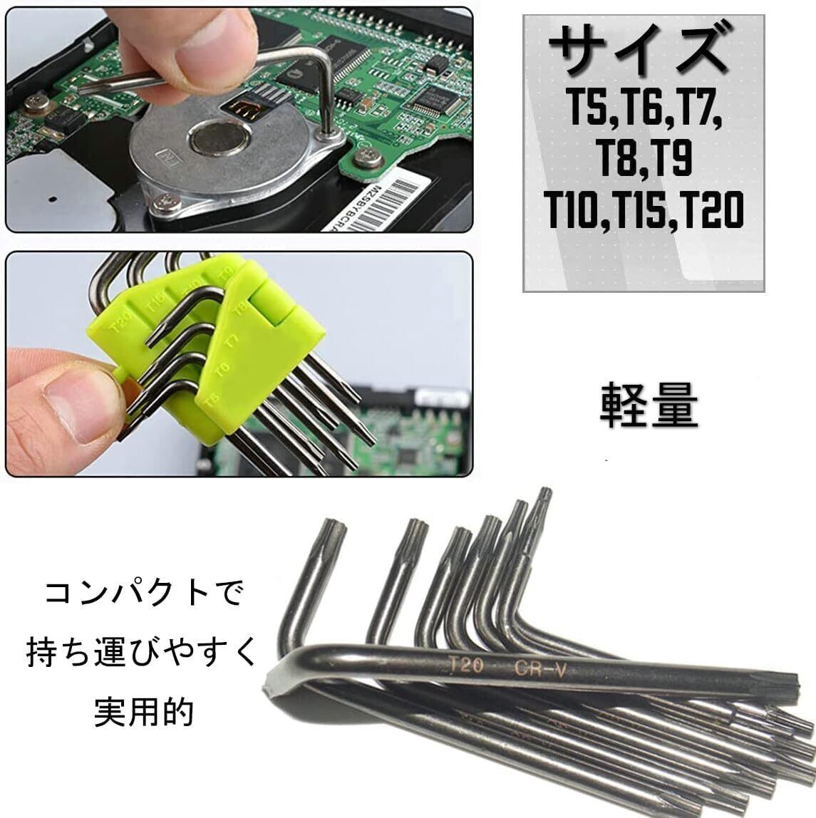 DeeAWai 精密トルクスドライバーセット8本組 T5 T6 T7 T8 T9 T10 T15 T20 L字型 クロムバナジウム鋼 改ざん防止ネジ対応 特殊星型ローブレンチ Mac Mini/Book HDD分解交換用 PS3/PS4/PS5修理ツールセット