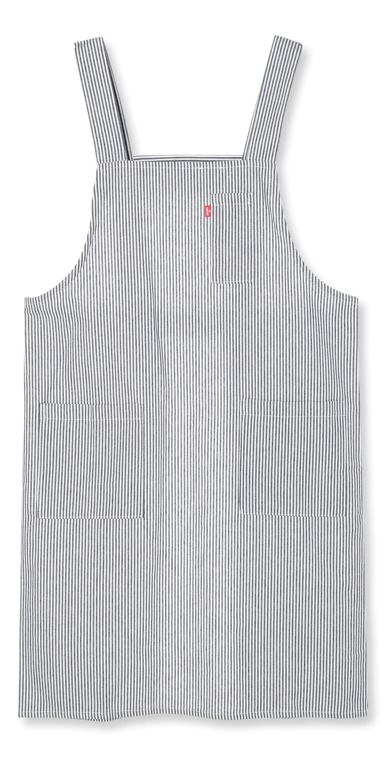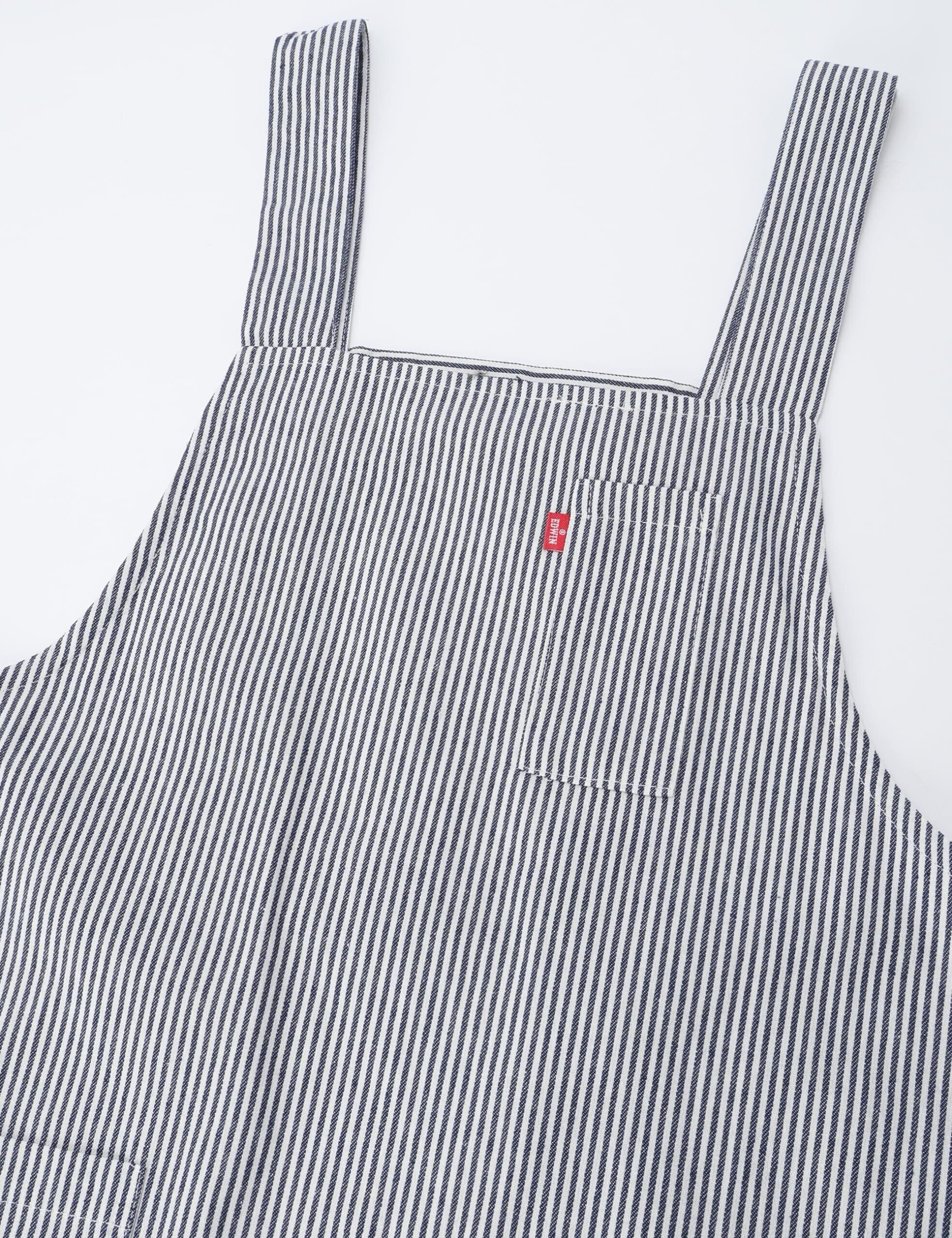 【数量限定】[エドウィン] エプロン 二段階調節可能な後ろ腰ボタン ヒッコリー H型 両サイドポケットペン差し付 ネイビー M