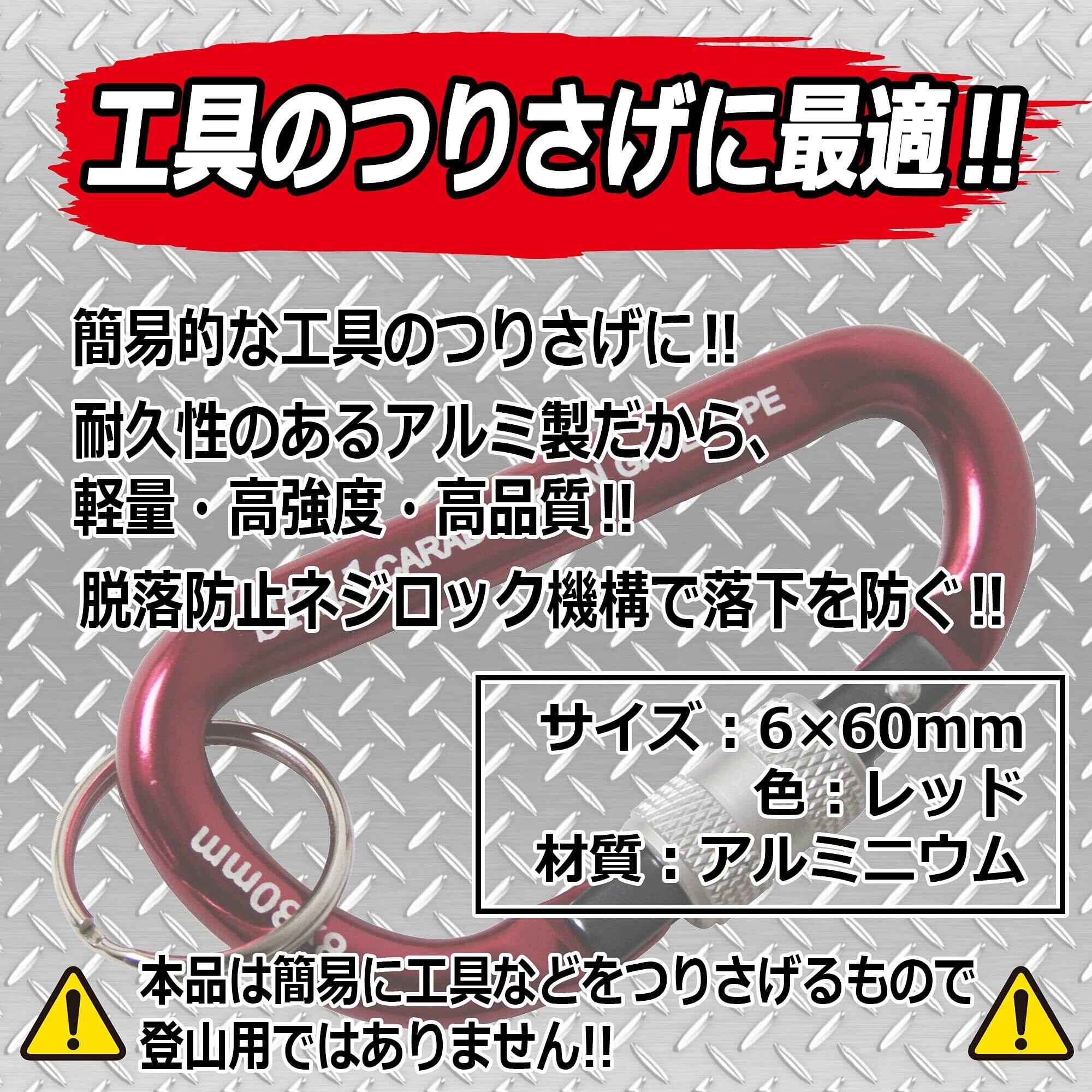 【2022最新】SK11(エスケー11) ロックカラビナ 脱落防止・ネジロック機能 BN レッド 6×60mm SAC-660BN