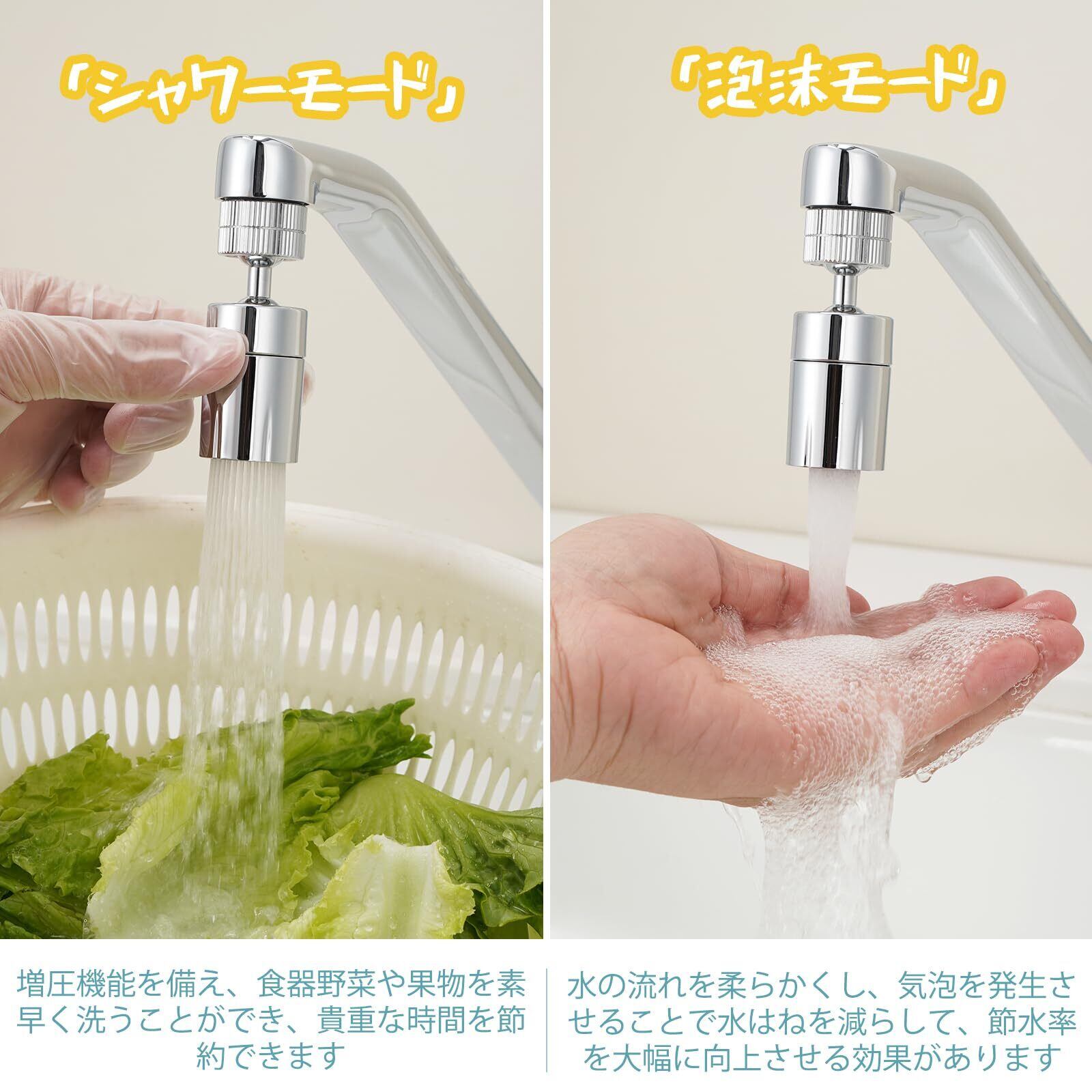 「2つのモード」従来の蛇口に取り付けられるだけで、吐水口のヘッドを回転させると、泡沫とシャワーモードを手軽に切り替えられます