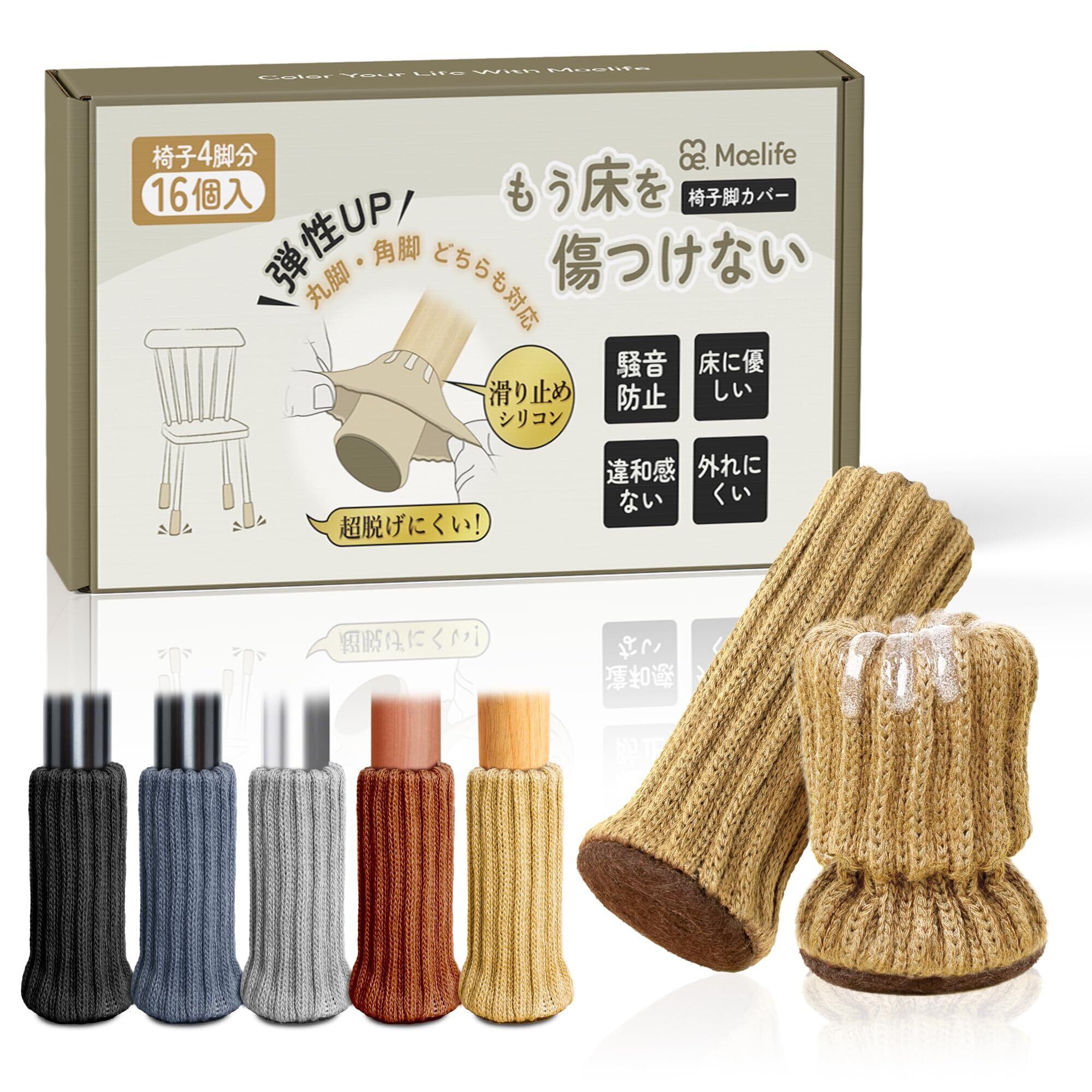 【特価セール】椅子脚カバー チェアソックス 椅子足カバー 【シリコン滑り止め・二重層ニット・色々な形適応】 椅子の足カバー 椅子の脚カバー 椅子足キャップ 椅子脚キャップ 椅子 靴下 足カバー キャップ 傷防止 滑り止め イス 足 脚 保護カバー フェルト 傷防止 外れない 脱げにくい 騒音対策 スムーズ移動 高弾性 洗える 角脚・丸脚兼用 4脚分 (カーキ, 16個セット 脚周り6~15cm)