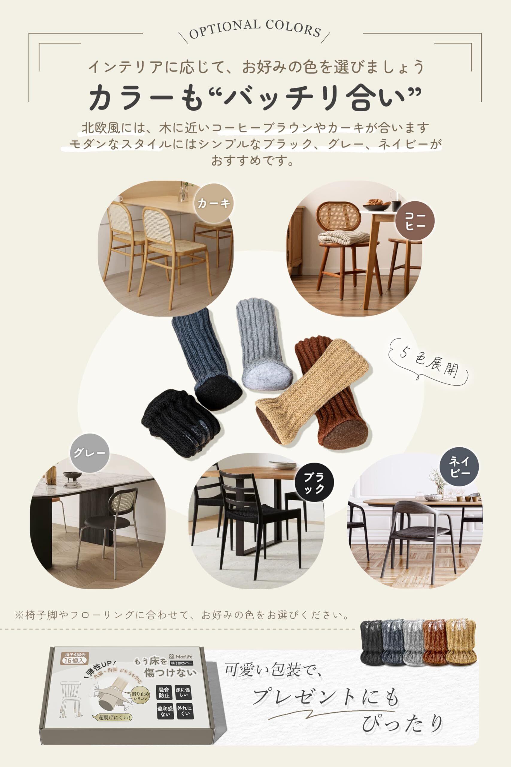 椅子脚カバー チェアソックス 椅子足カバー 【シリコン滑り止め・二重層ニット・色々な形適応】 椅子の足カバー 椅子の脚カバー 椅子足キャップ 椅子脚キャップ 椅子 靴下 足カバー キャップ 傷防止 滑り止め イス 足 脚 保護カバー フェルト 傷防止 外れない 脱げにくい 騒音対策 スムーズ移動 高弾性 洗える 角脚・丸脚兼用 4脚分 (カーキ, 16個セット 脚周り6~15cm)