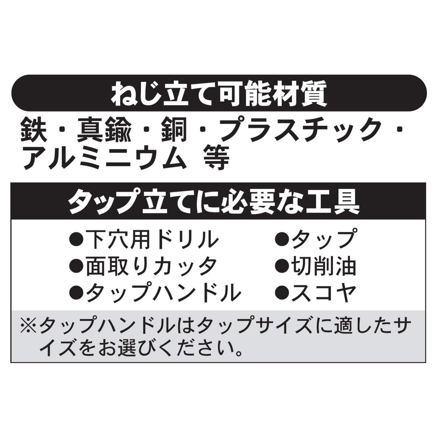 用途:一般鋼材・真鍮・銅・アルミ・樹脂等のめねじ立てに