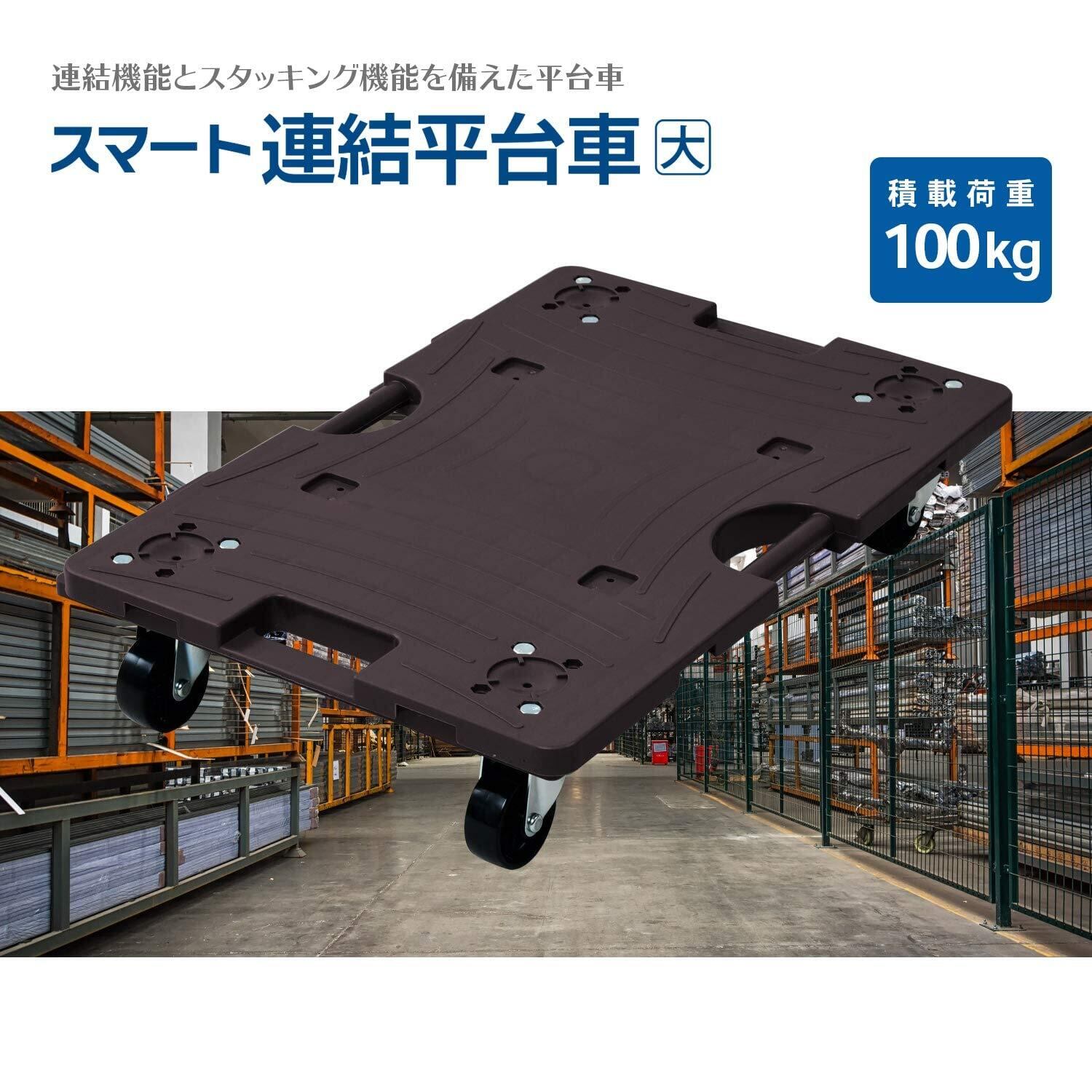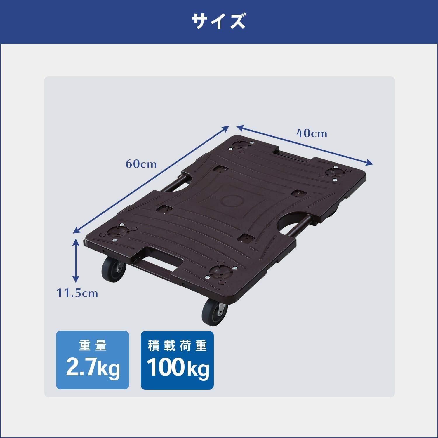 【2022最新】[山善] スマート連結平台車 40×60cm エラストマーキャスター 耐荷重100kg ダークブラン NTRL-E65DB