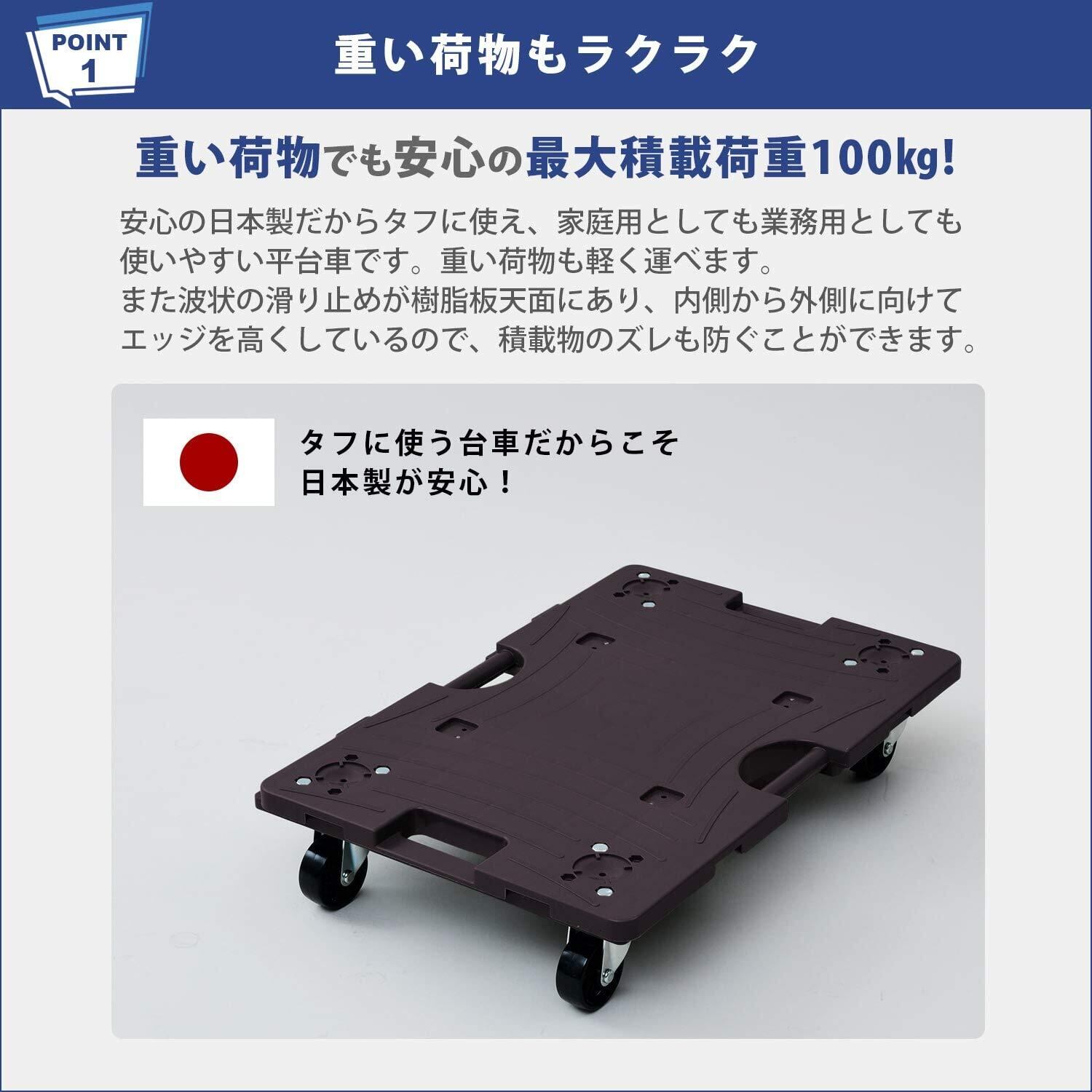 [山善] スマート連結平台車 40×60cm エラストマーキャスター 耐荷重100kg ダークブラン NTRL-E65DB