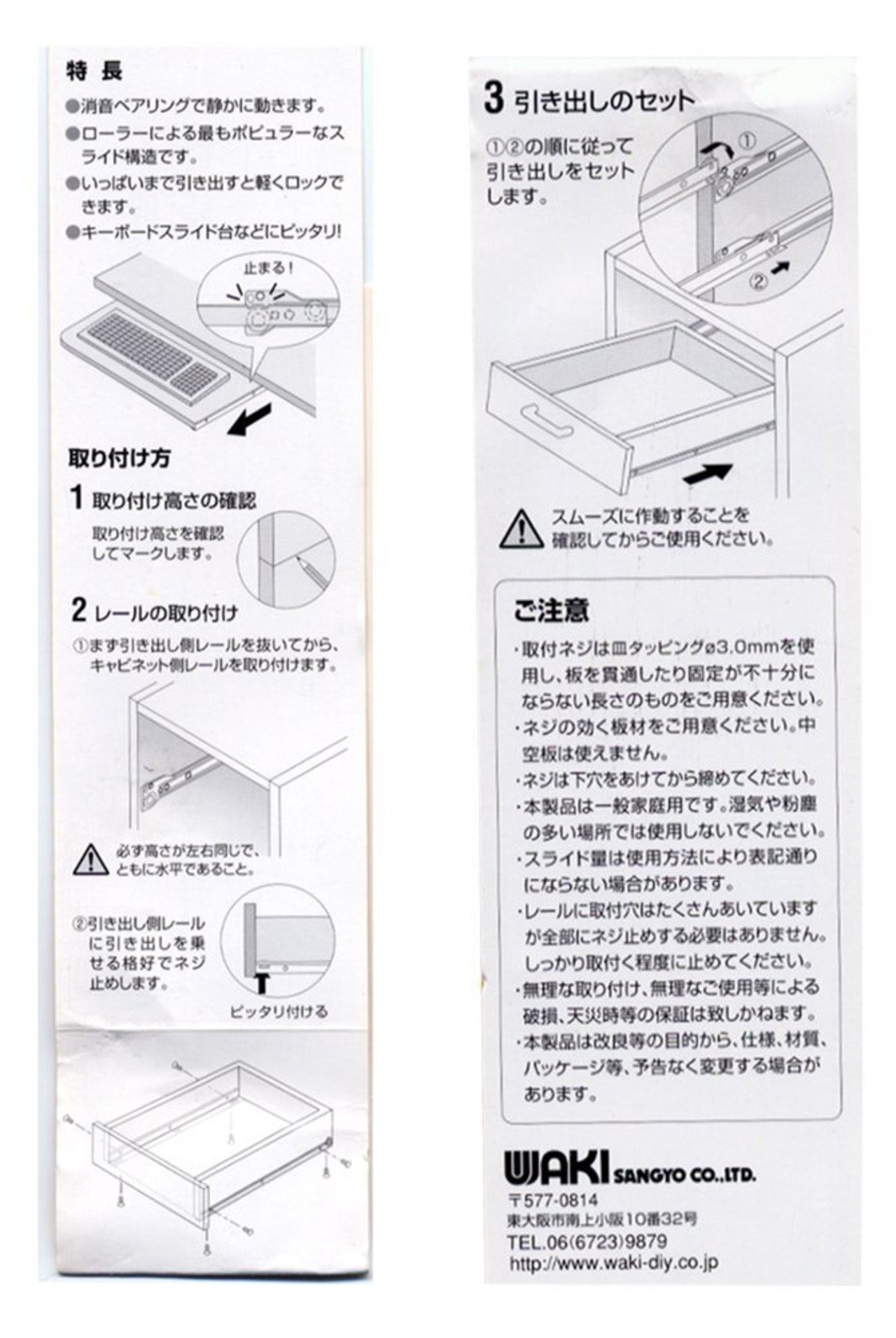 注意:引き出しの長さと同じ長さのレールを選んでください。