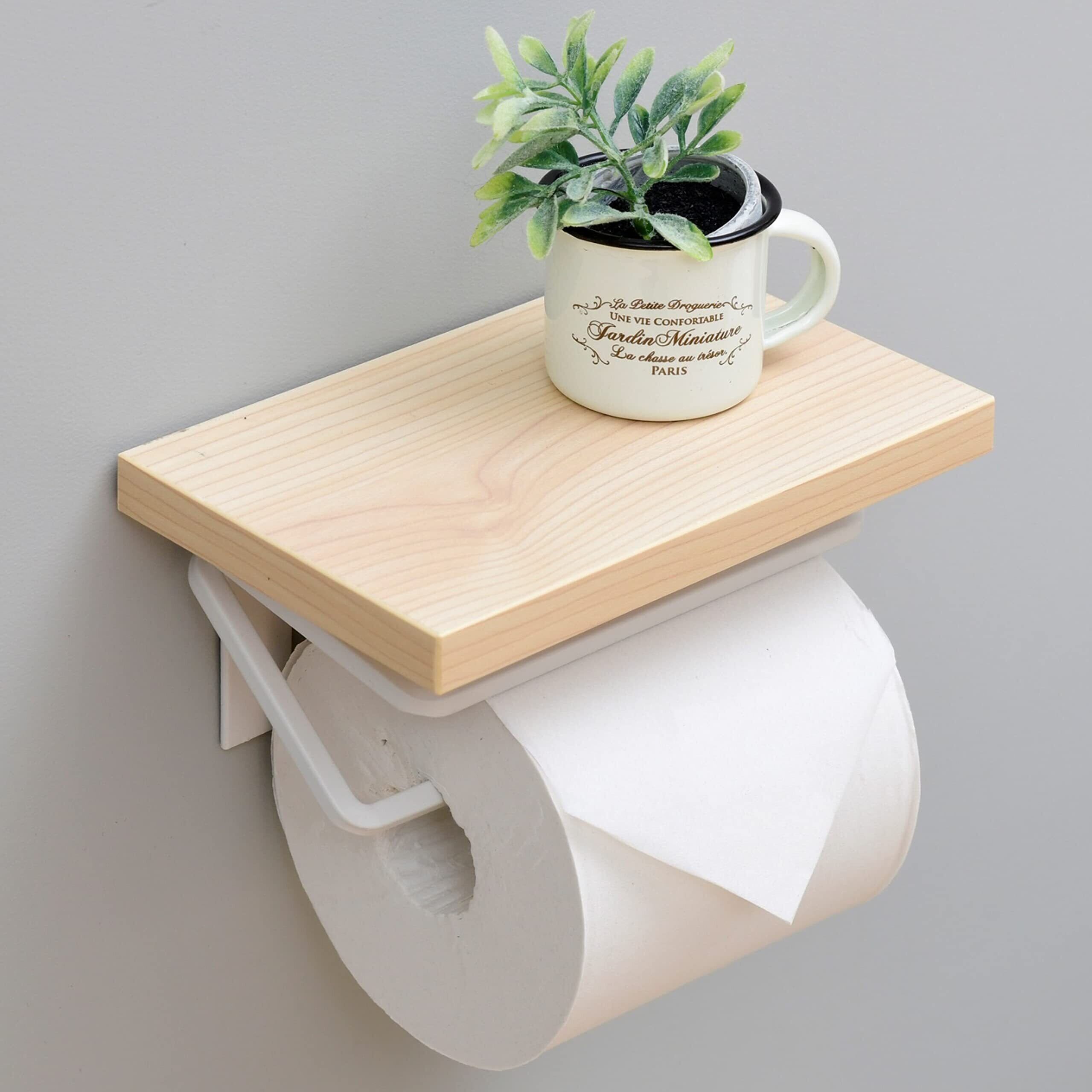 【新春セール】山善(YAMAZEN) トイレットペーパーホルダー 棚付き (スマホ置き/インテリア) シングル 汚れに強い天板 かんたん設置 幅17.5×奥行11×高さ9cm ウッドナチュラル/マットホワイト RPH-S(WN/MWH)