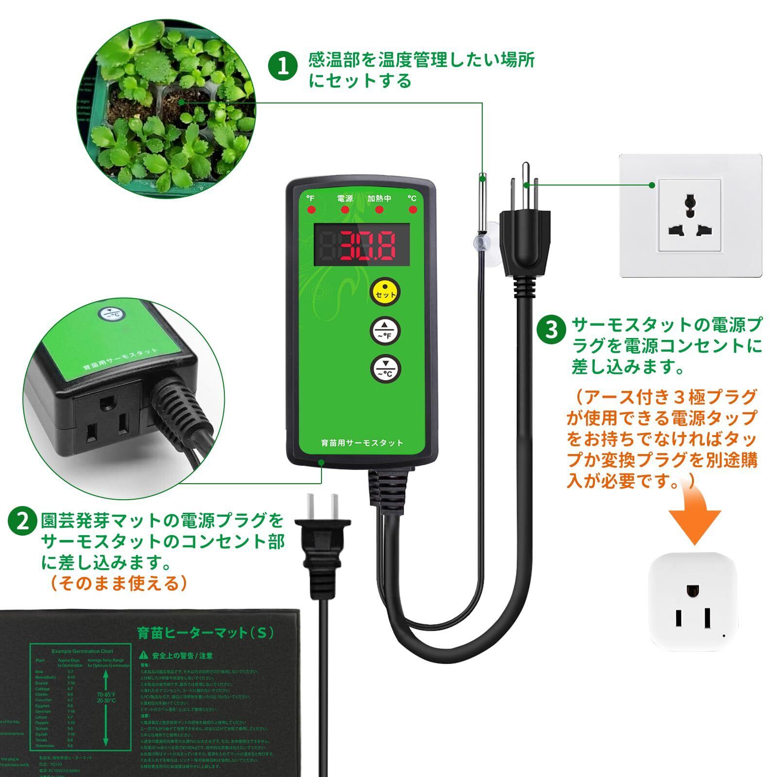 CONPURL 園芸発芽マット+育苗マットサーモスタットセット 温度調節 育苗器 ヒーターマット 温度制御 温床関連 室内栽培