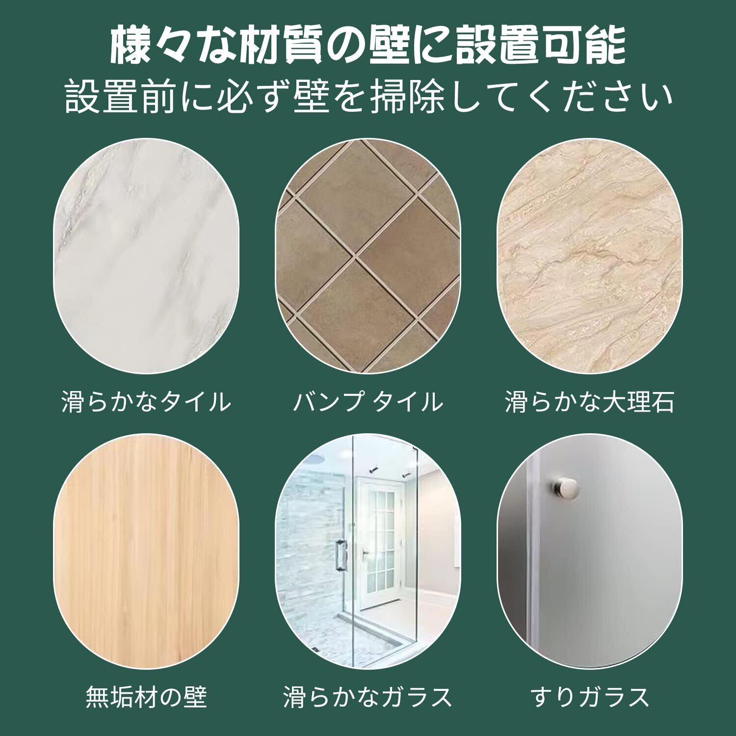 【適用壁面】タイル、ガラス、鏡、ステンレス、押え板などのいかなる光沢に適用し、隙間がなく、タイル継ぎ目表面がない。隙間のある小さなタイル、天然大理石、ペンキ壁、ラテックス塗料、古いタイル、セメント壁、その他の通気性材料には適用されません。