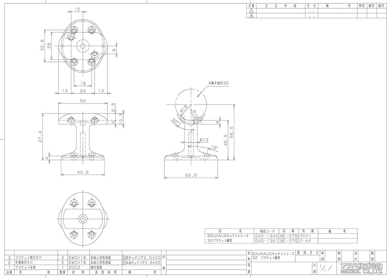 ねじ付(壁取付用+3.5×40 4本、手すり取付用+3.5×20 2本)