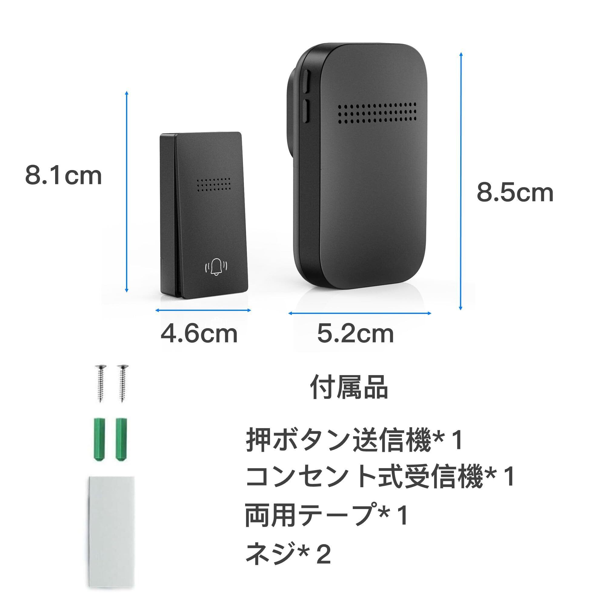 【電池不要&簡単取付】自動発電の送信機なので電池不要で、ボタンが押されたときのみ電力を生成します。このため、メンテナンスや交換の頻度が低く、長い寿命を持つことができます。 また両面テープとネジが付属しており、配線不要で簡単に取り付けることができます。 受信機はコンセントに差し込むだけ、お子供や年寄りの方がご利用できます。