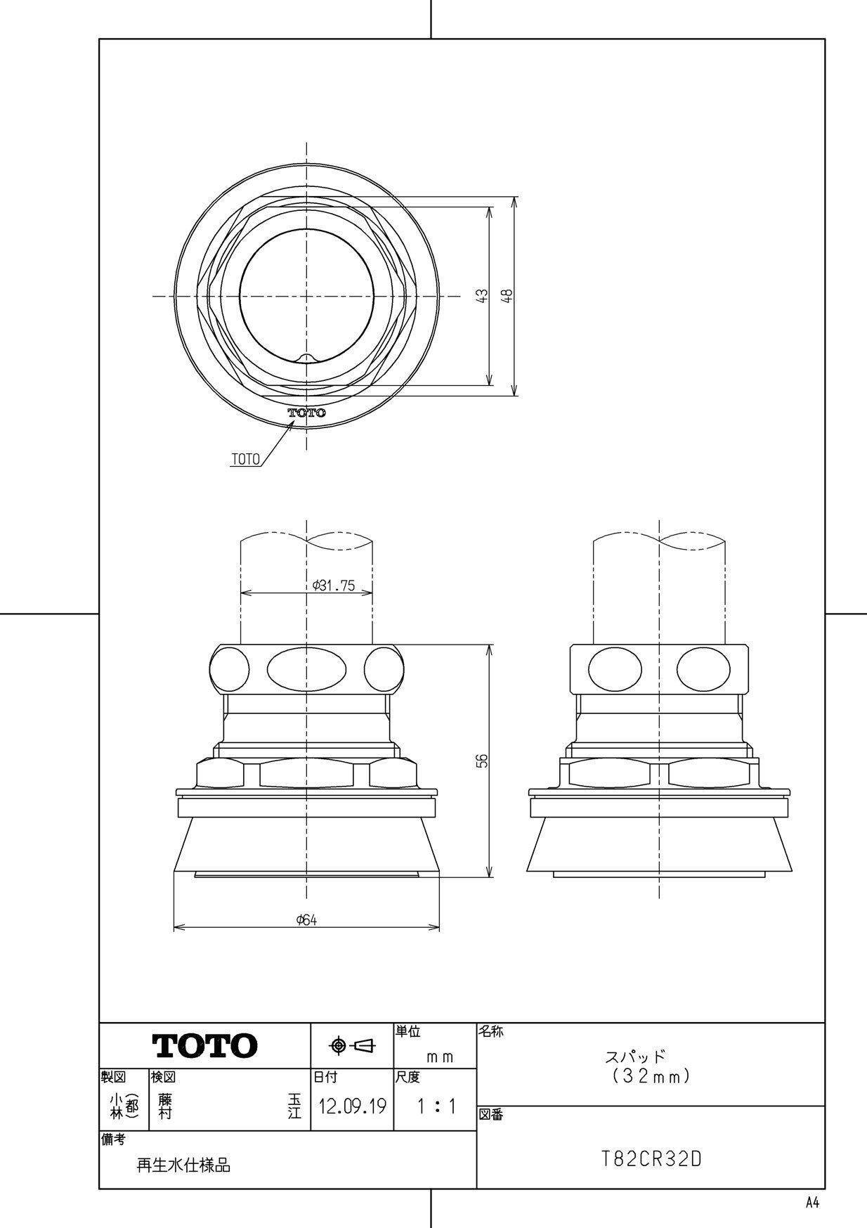 【新着商品】TOTO 大便器用スパッド(32mm・再生水仕様) T82CR32D