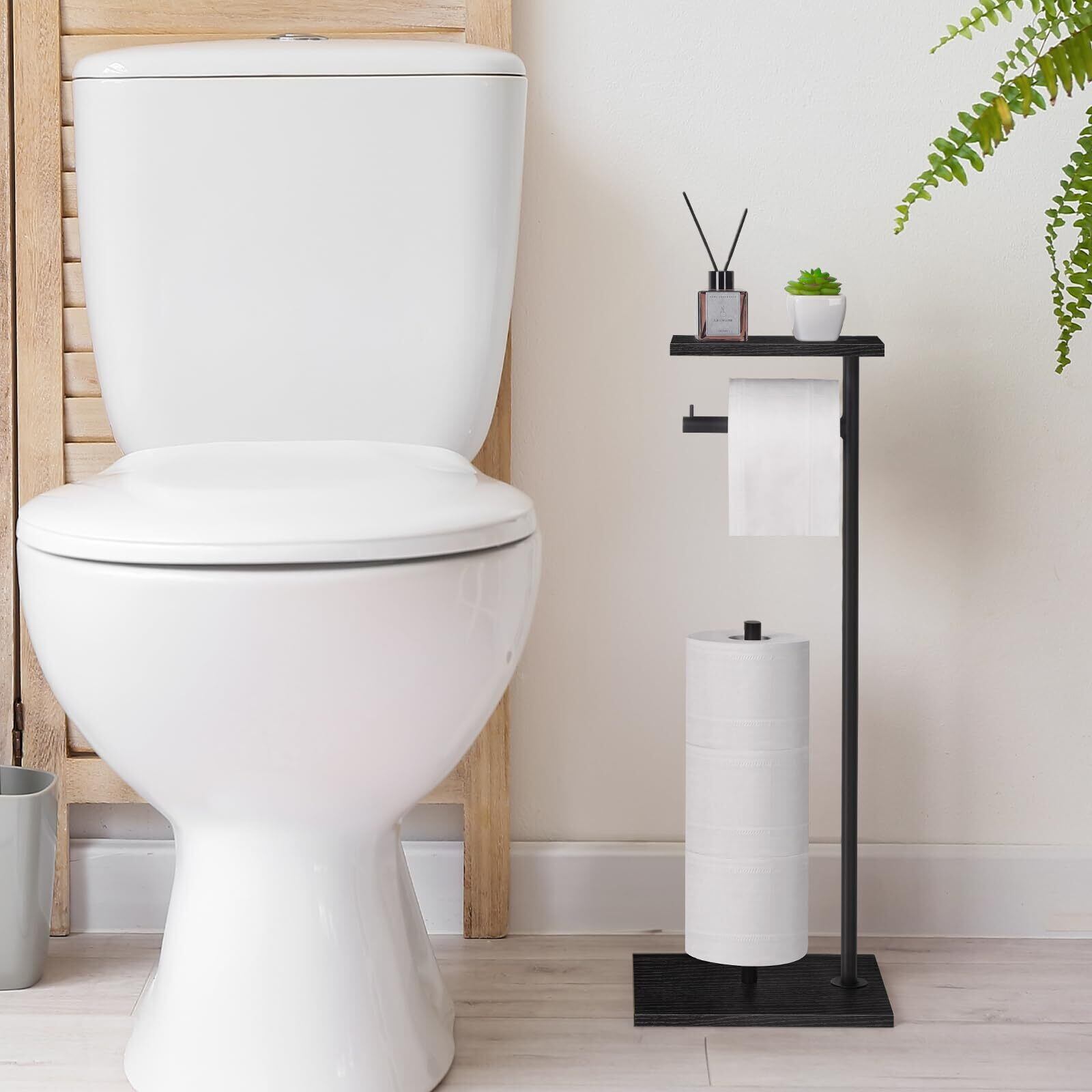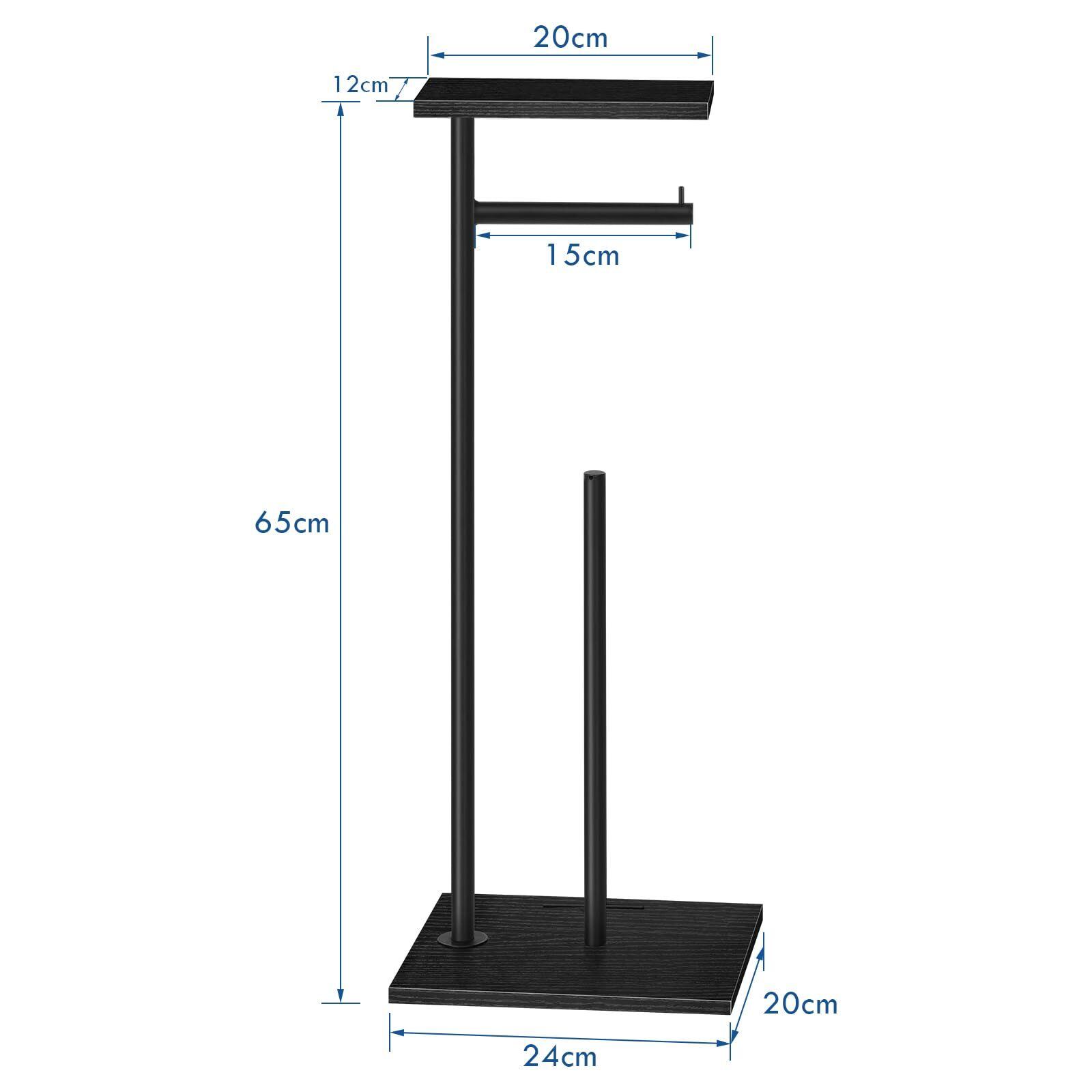 【特価セール】自立式トイレットペーパーホルダートイレットペーパーホルダー 置き型トイレットペーパースタンド ティッシュホルダー ペーパーホルダー ペーパーホルダースタンド 金属ホルダー 木製棚付き キッチンペーパーホルダー トイレ 収納 ラック ブラック | allstore3