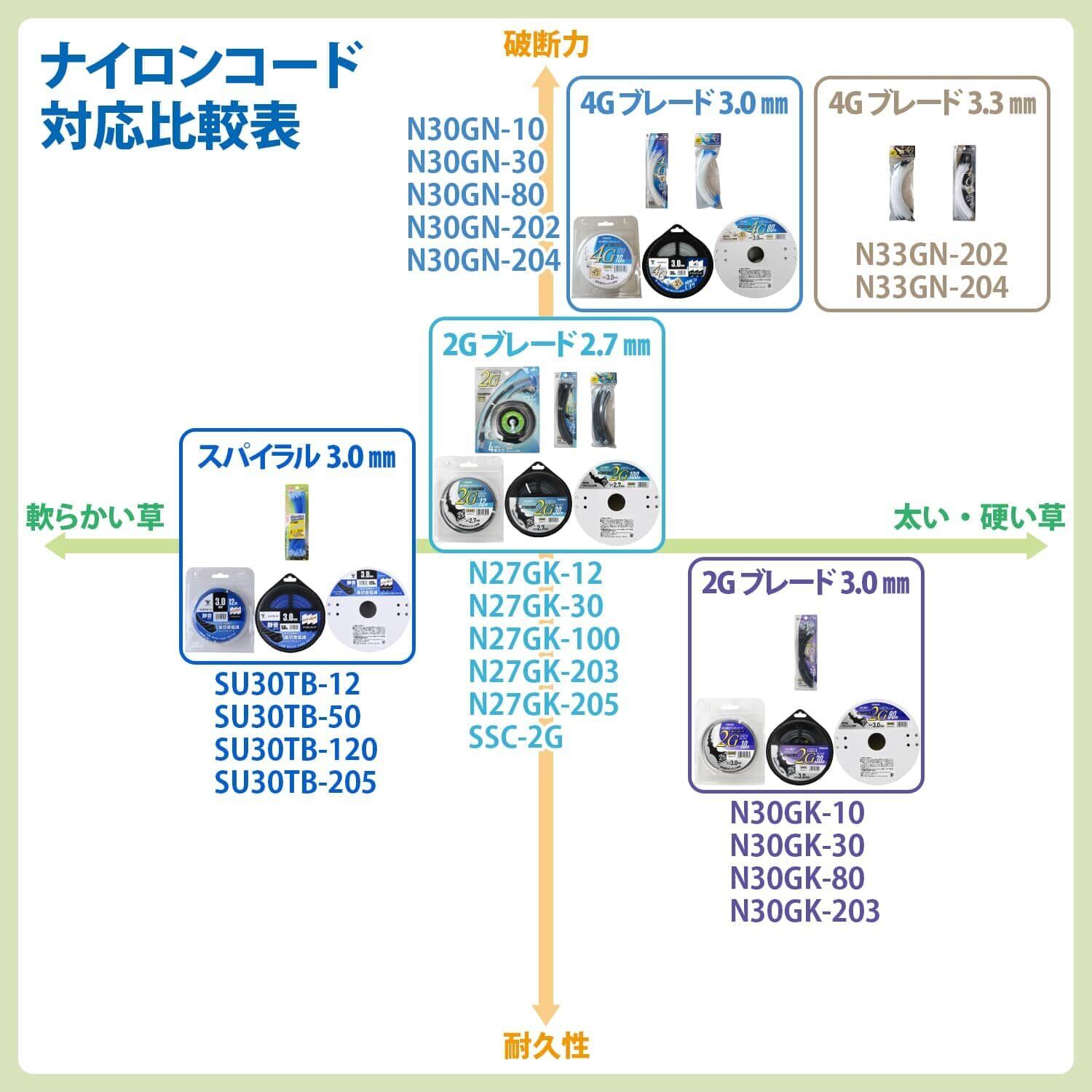 【特徴】切れ味抜群な草刈用ナイロンコードです。ナイロン材料・コード成型・せん断加工などすべて日本国内で行っております。キックバックが起きにくいナイロンコードは安全性が高く、さらに草を粉砕しながら刈り取りを行うので、草刈作業後の草を集める作業を必要としません。刈り取った場所に草が溜まらなければ、刈り具合も確認できるので刈残しも少なく済みます。柔軟性に優れて、カッターヘッドへの巻き作業も簡単です。のこぎり状の刃形状は切れ味抜群で、初秋の硬くなりやすい草でも高い切れ味を発揮します。