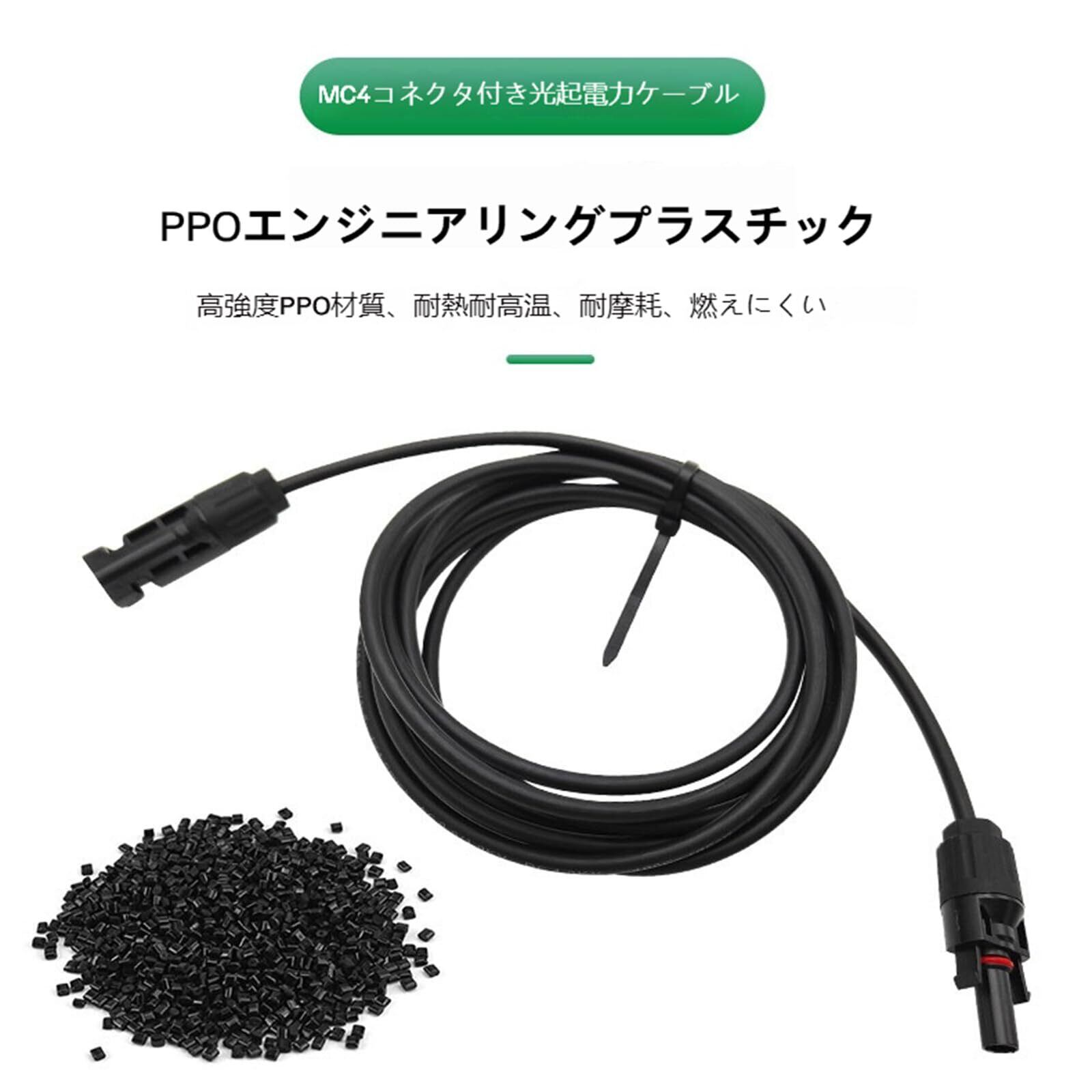 【仕様】規格:12AWG、断面積:4mm²/6mm²(長さ:1M 2M 3M 5M 10M ) 定格電圧:DC1000-600V、許容電流:40A、端子タイプ:MC4コネクタ(両端加工式)(赤い延長ケーブル*1本+黒い延長ケーブル*1本)