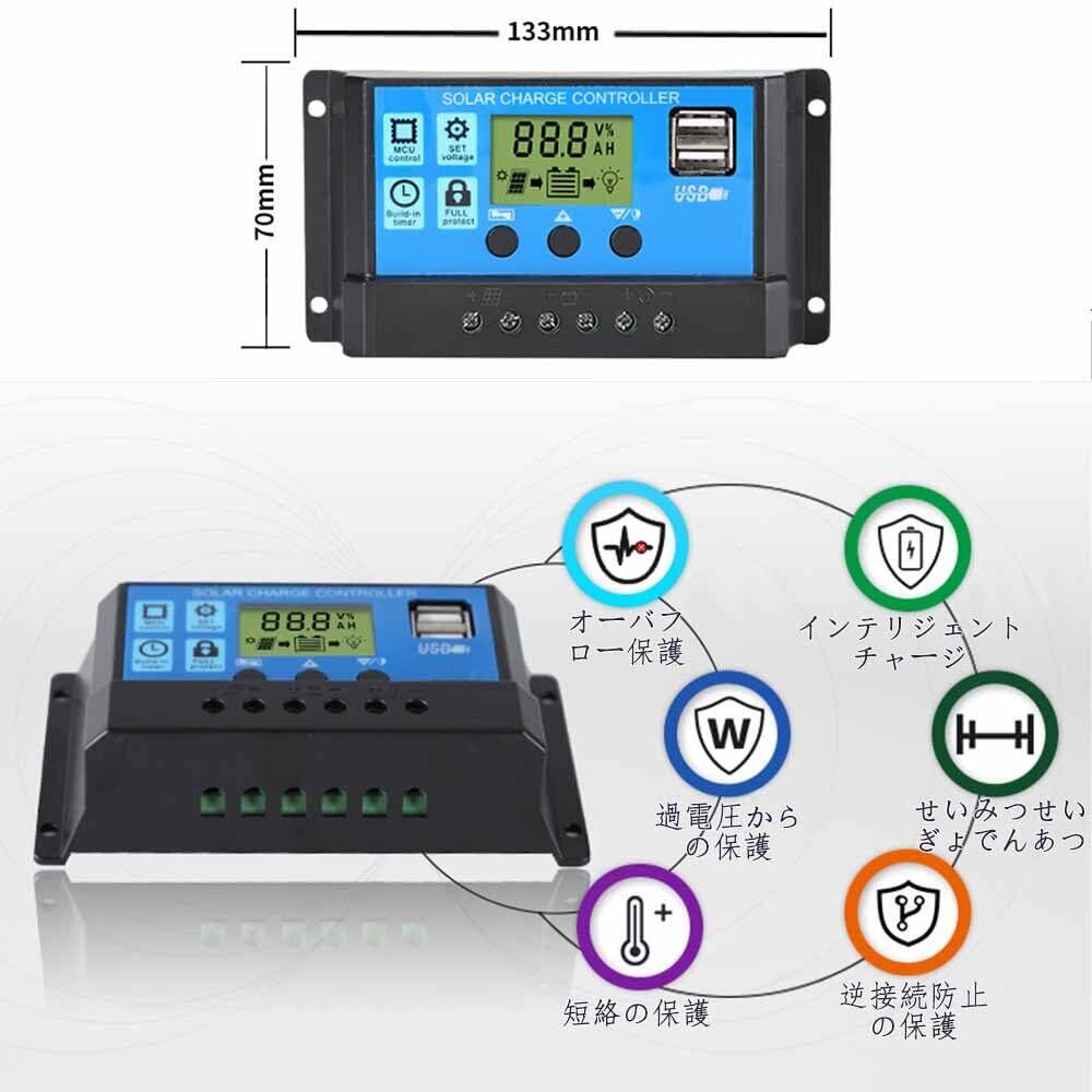 セット内容:ソーラーパネル充電コントローラー1個セット、サイズ:約133*70mm。(寸法は人工測定で誤差がある場合がありますのでご了承ください。)カラー:青+黒。(説明書は更新されますので、安心してお使いください。)