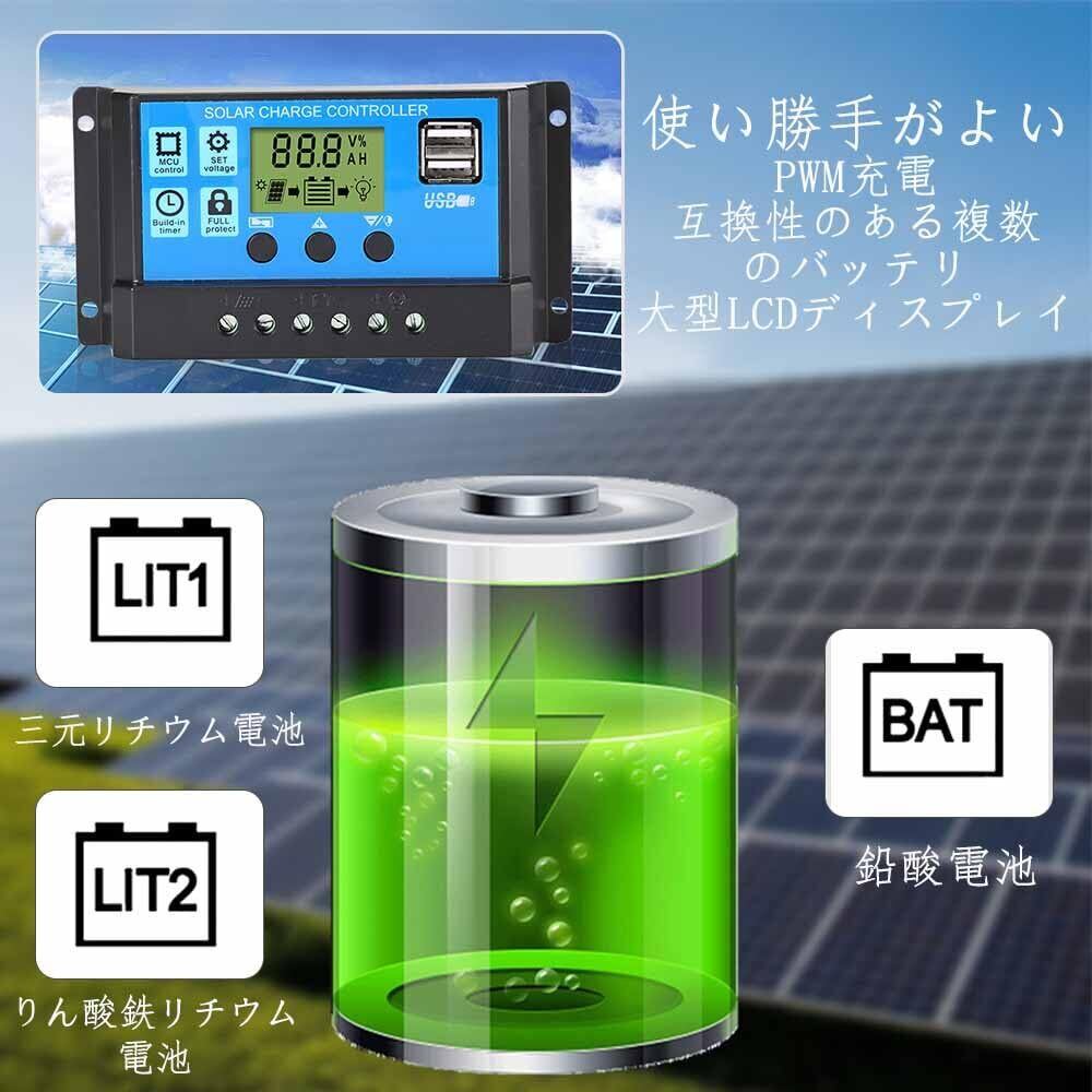YUWENW PWMソーラーパネル充電コントローラー ソーラーチャージ コントローラー 1個セット バッテリー充電 コントローラー 大型LCDディスプレイ デュアルUSBポート装備 インテリジェント 時間 多機能調整可能 過充電 過負荷 防止保護 ソーラーパネル 接続用