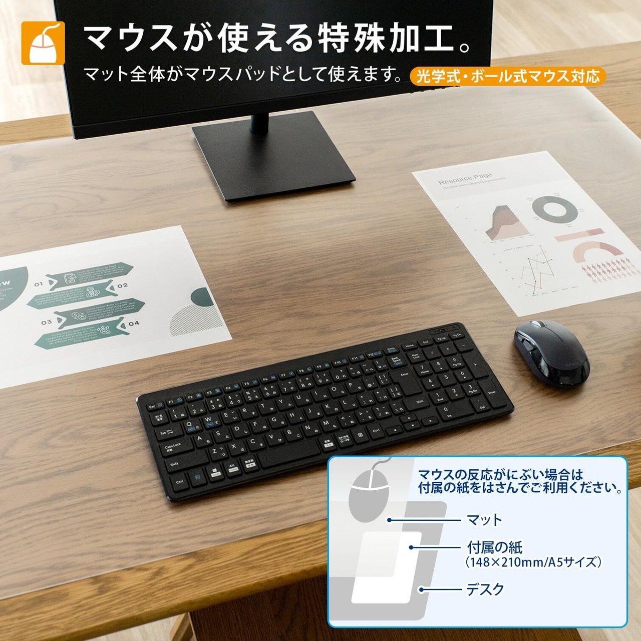 マウスが使える特殊加工で、マット全体がマウスパッドとして使えます。(光学式/ボール式マウス対応※)