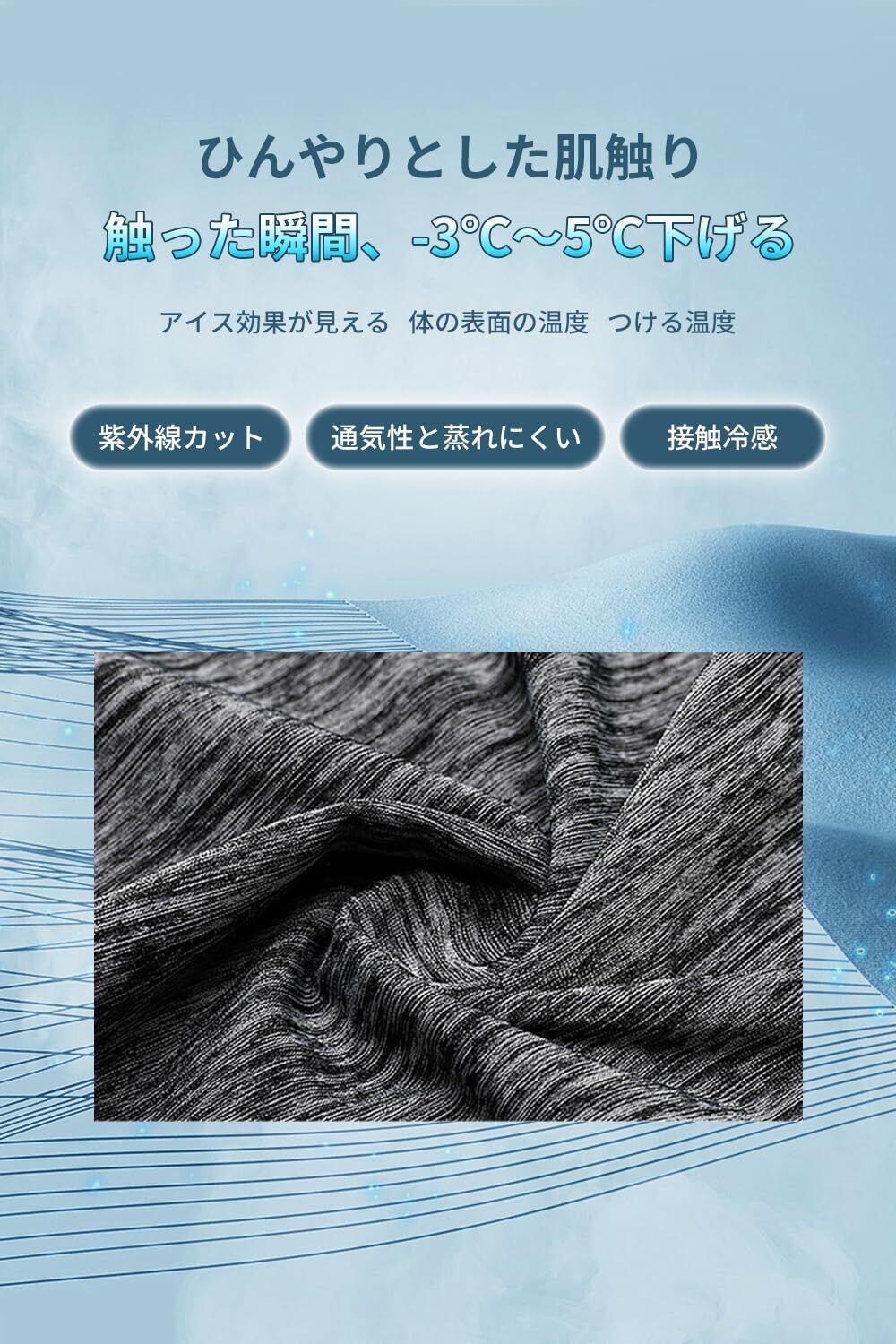 【ひんやり冷感素材】夏にはUVカット、紫外線を対策します。接触冷感材質を採用して、水や汗で濡れると気化熱の作用により冷却効果があり、肌と接触した瞬間に温度を3-5度を下がる涼しい冷感、真夏中でもクールを感じます。吸汗速乾素材を使用して、すばやく吸収して拡散して、いつもサラサラさわやかで付け心地も良いです!