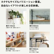 棚板奥行 250mm:カゴやタオル置きにちょうどいいサイズ。