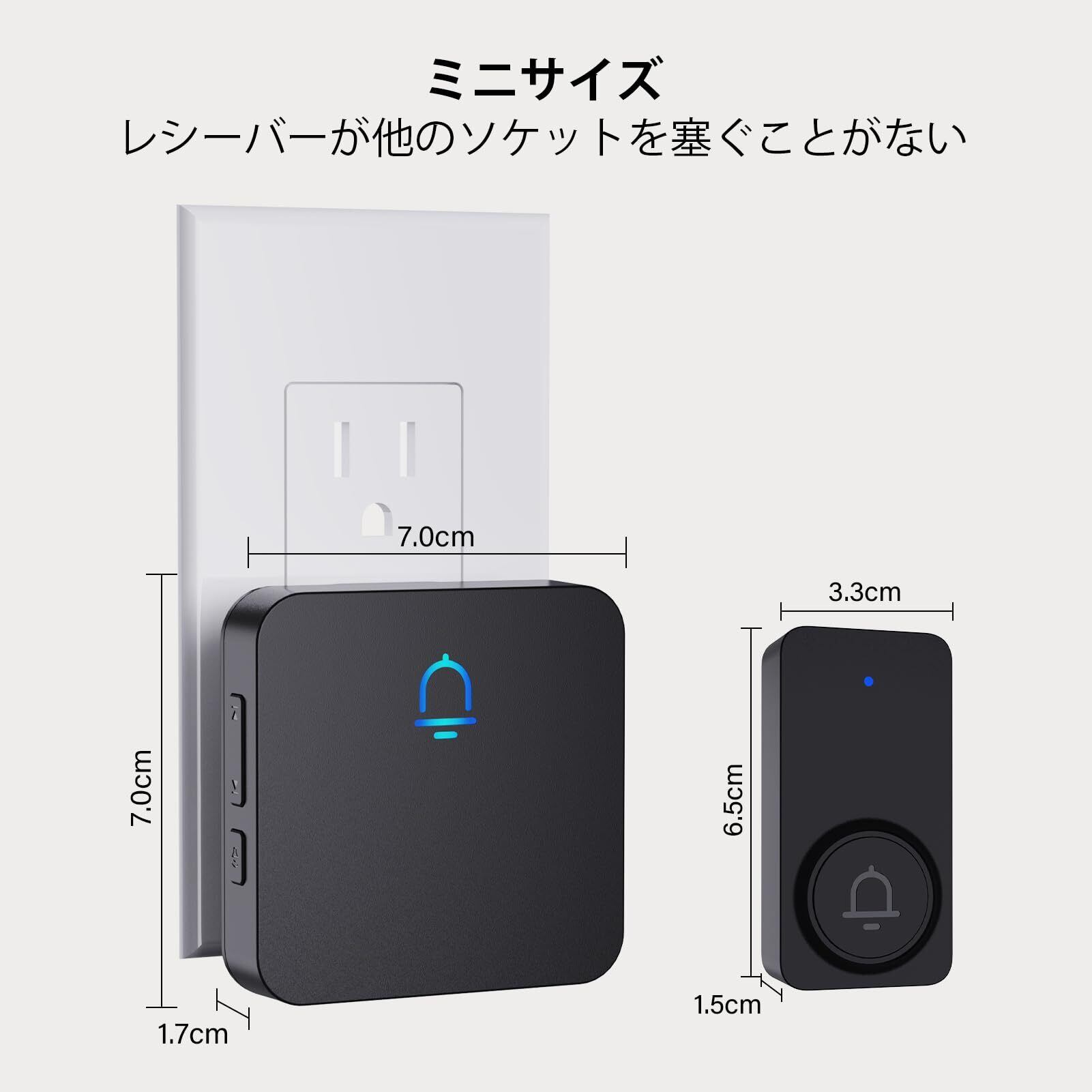 【特価セール】SECRUI ワイヤレスチャイム 受信機 2個 玄関チャイム 送信機 電池式 屋外 防水 工事不要 室内 子機 コンセント 音と光で呼び出し 7色提示led 32曲 5段階音量調節 300M無線範囲(ブラック 1T2) | allstore3