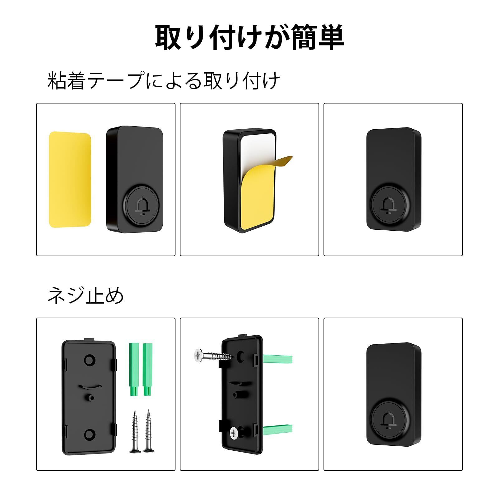 [取り付け簡単] SECRUI ワイヤレスドアチャイムは、とても簡単に取り付けられます。高度な配線や特殊な工具は不要です。数分ほどで自宅に設置できるので、ワイヤレスドアチャイムのセキュリティ機能を気軽に活用できます。