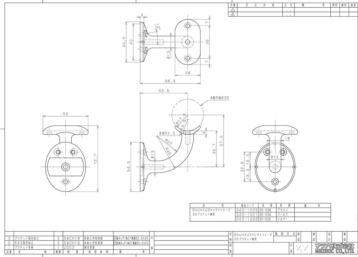 マツ六(Mazroc) 手すり部材 BAUHAUS セレクト 35ブラケット横型 BD-03B ブラウン