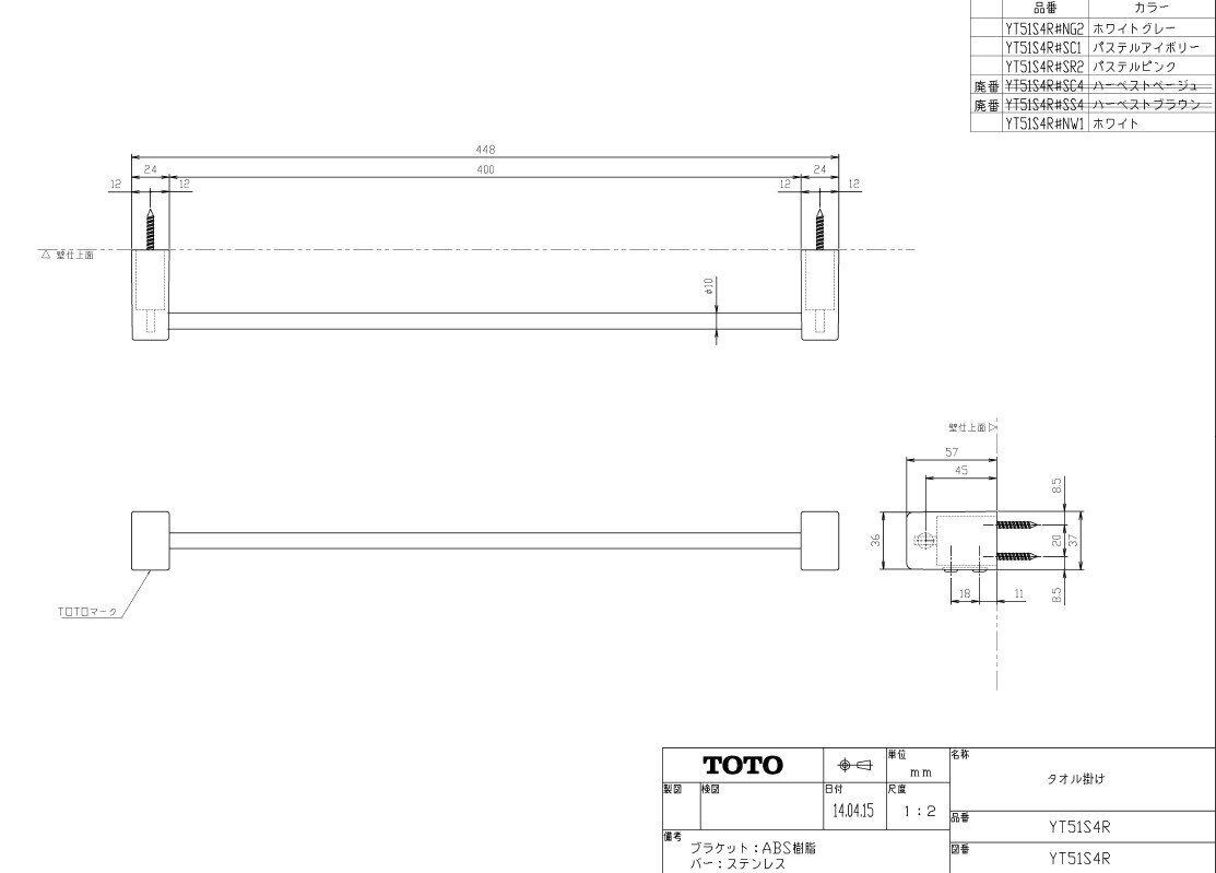 【在庫セール】TOTO タオル掛け パステルピンク YT51S4R #SR2