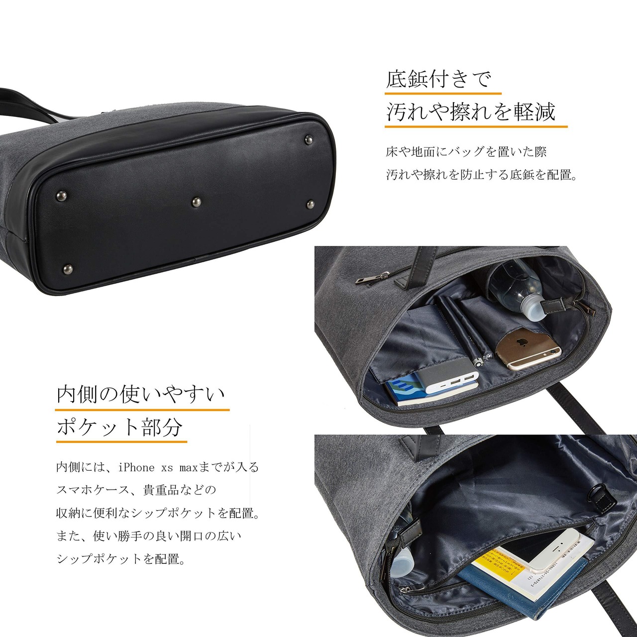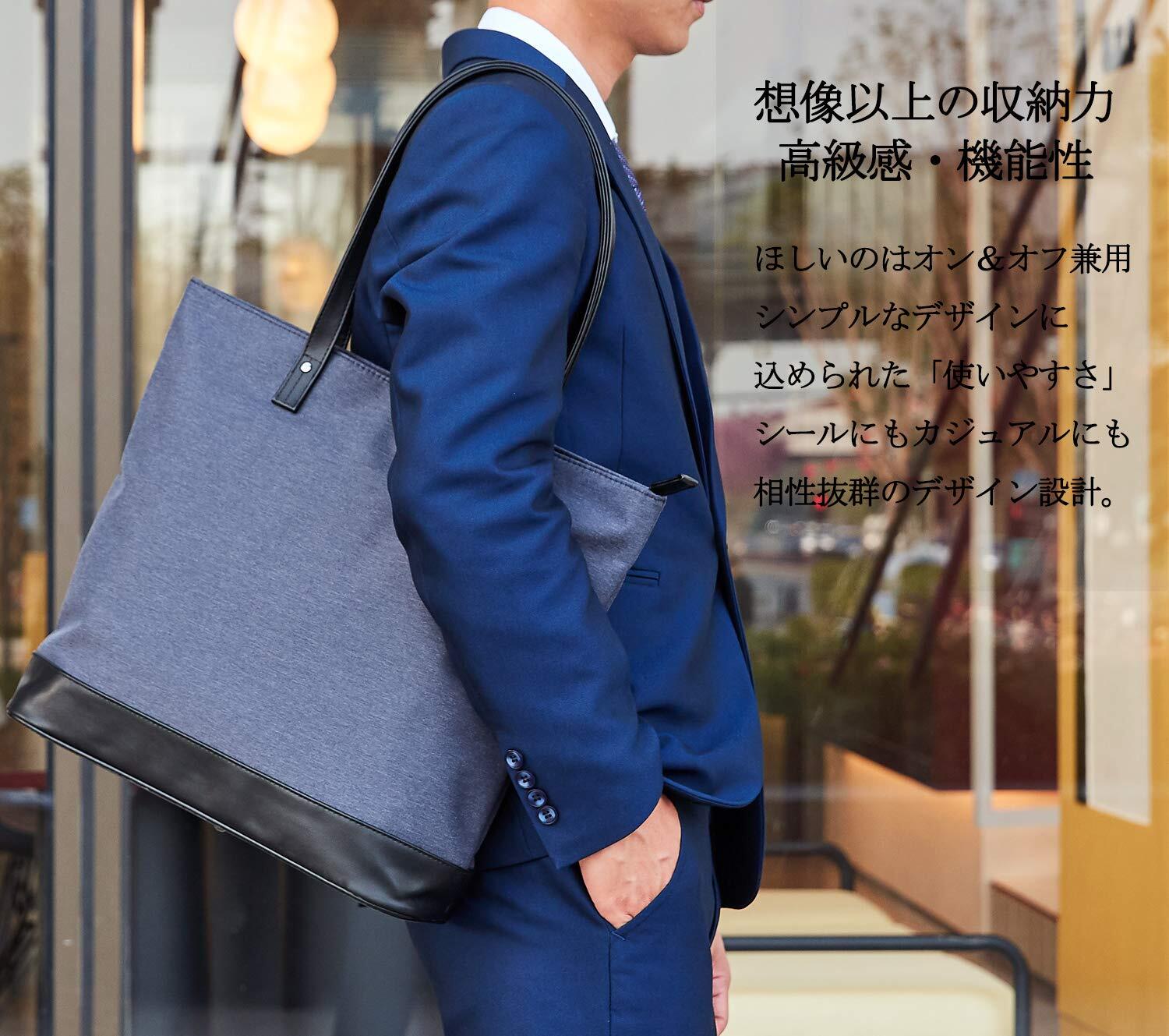 [オン&オフ兼用・機能性・ビジネストート]見た目はもちろんのことながら、重視したいのがその機能性。カジュアルに見られがちなトートバッグながらも高級感溢れる質感も持ち合わせたシンプルなデザイン。あらゆるビジネスグッズをスマートに持ち運び可能で、耐久性も抜群という高機能が自慢。いつでも万全な体制で戦い抜く。デキル男の相棒となるトートバッグです。