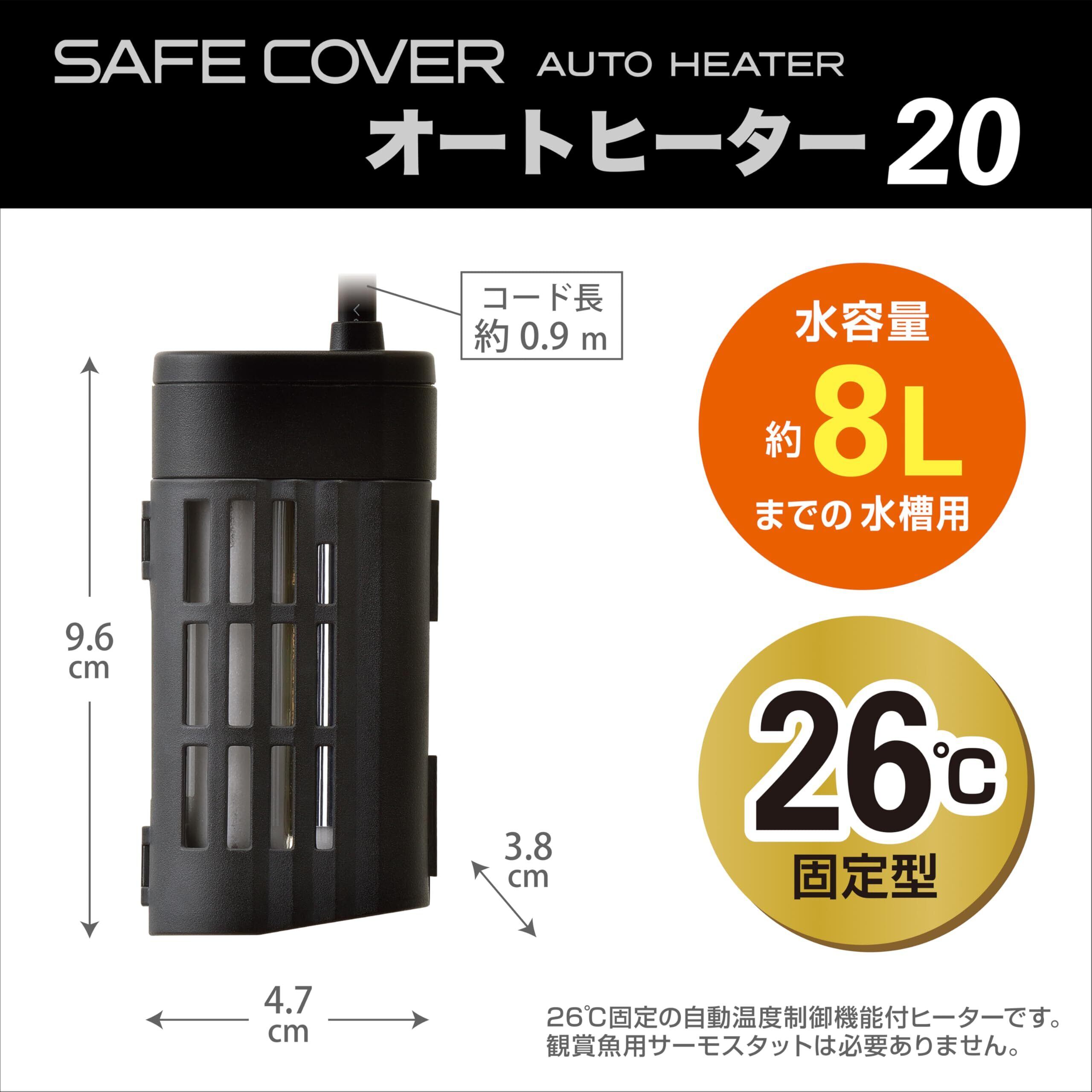 ジェックス GEX AQUA HEATER セーフカバーオートヒーター 20 26℃自動保温 縦横設置 安全機能付 SP規格適合 約8L以下の小型水槽用 20W