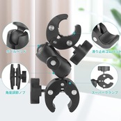 【中央のボールヘッドアーム】普通の自由雲台より、中央連接部には2箇所ボールヘッドからなる長さ18.5cmであるマジックアームが採用されます。軸方向に360度回転するだけではなく、傾けることもできます。更に、より長いボディーで様々な撮影場面にも大活躍します。
