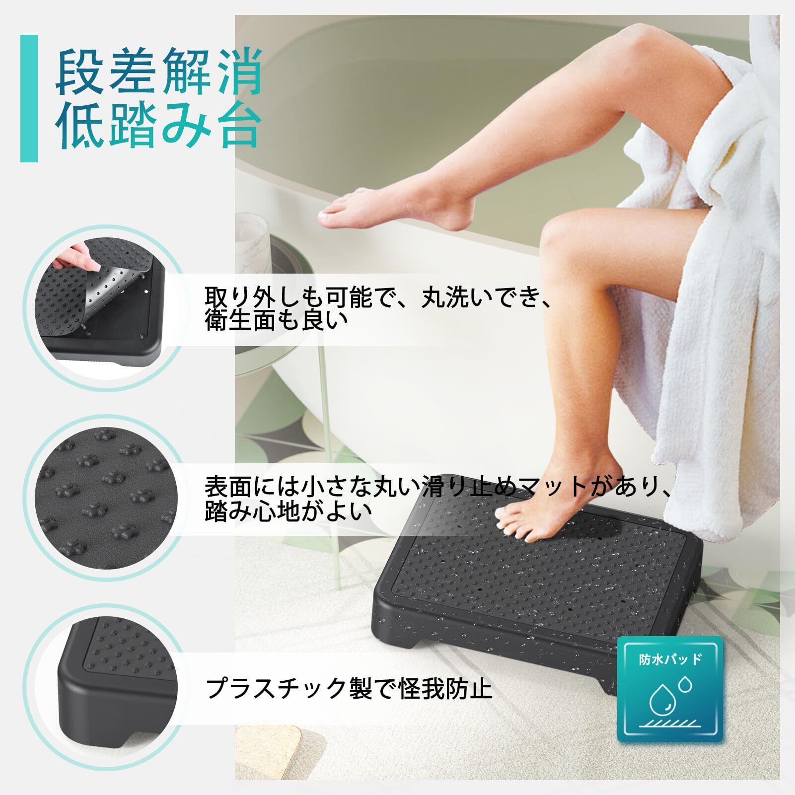 【滑り止め・安定感】 玄関踏み台板の表面に滑り止めマットがあり、ずれにくく、踏み心地が良い。底面には合計5つの滑り止めを採用され、安定感抜群。 最大耐荷重は約250kgです。