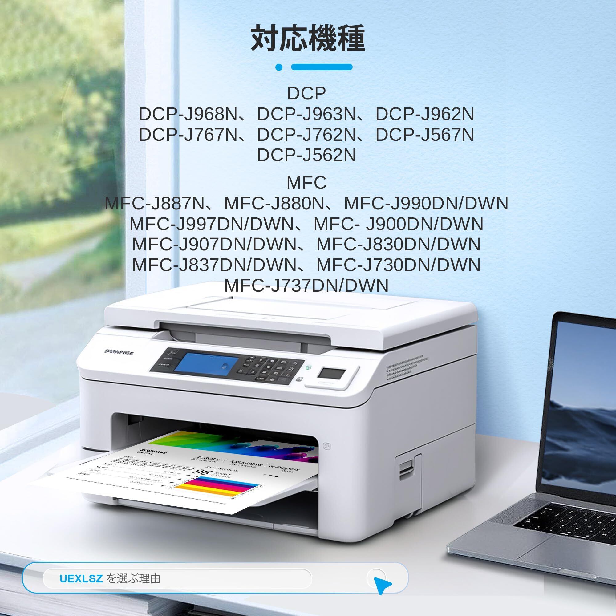 【対応機種】: ブラザー MFC-J730DN、MFC-J730DWN、MFC-J737DN、MFC-J737DWN、MFC-J830DN、MFC-J830DWN、MFC-J837DN、MFC-J837DWN、MFC-J880N、MFC-J887N、MFC-J900DN、MFC-J900DWN、MFC-J907DN、MFC-J907DWN、MFC-J990DN、MFC-J990DWN、MFC-J997DN、MFC-J997DWN、DCP-J562N、DCP-J567N、DCP-J762N、DCP-J767N、DCP-J962N、DCP-J963N-B、DCP-J963N-W、DCP-J968N-B、DCP-J968N-Wのプリンター 対応。
