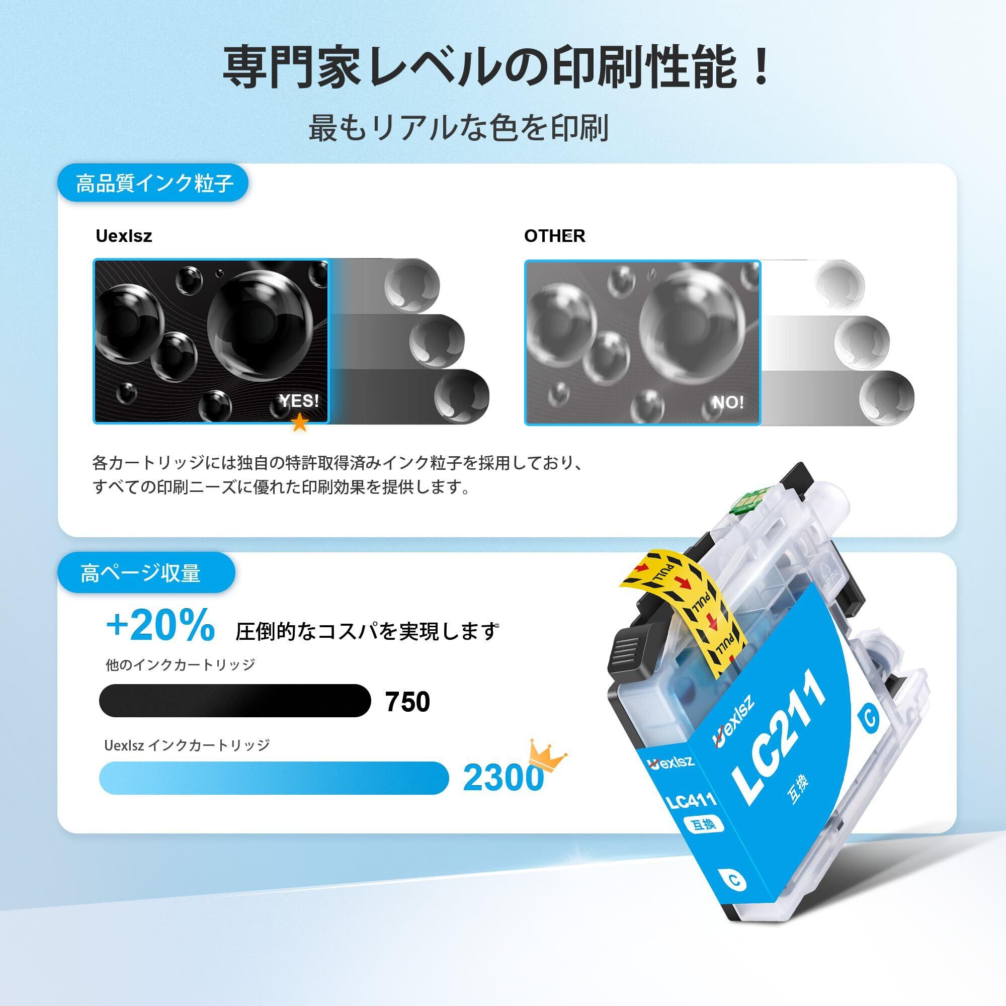 【製品特徴】:弊店の LC211 インク はハイクオリティ染料インクを採用、写真/文字印刷に適しています。