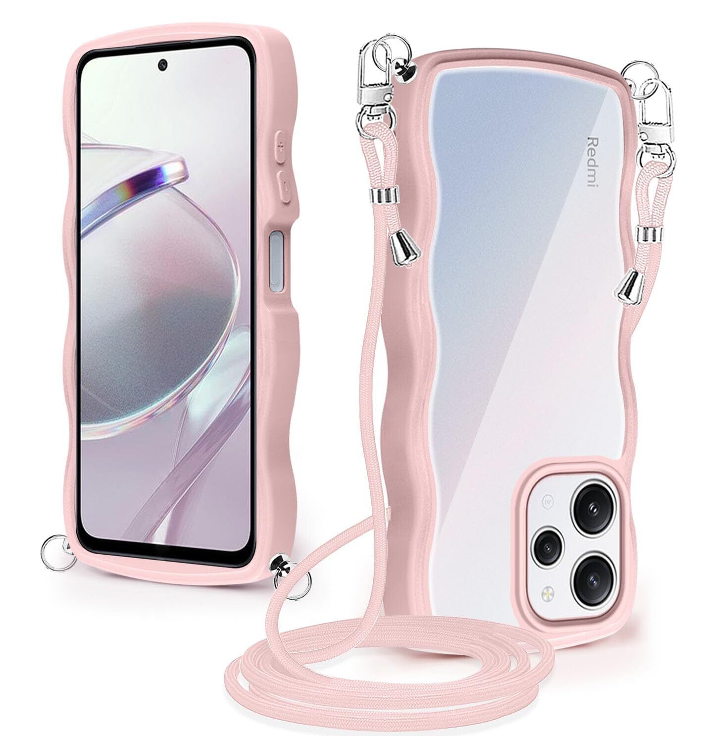 Xiaomi Redmi 12 5G ケース/XIG03 ケース クリア ショルダー 耐衝撃 かわいい 人気 シャオミ リドミ12 5G カバー 透明 スマホケース 薄型 軽量 首かけ 肩掛け 縄掛けケース ストラップ付き 取り外し可能 長さ調整可能 ワイヤレス充電対応(ピンク)