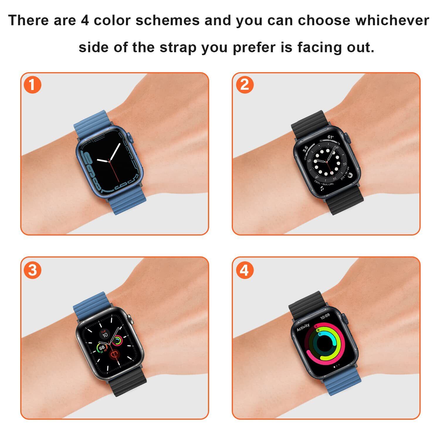 【2022最新】Anlinser コンパチブル Apple Watch バンド42mm 41mm 40mm 38mm、磁気両面リバーシブルアップルウォッチバンド シリーズ10/9/8/7/6/5/4/3/SE 用(黒/青い) | allstore3