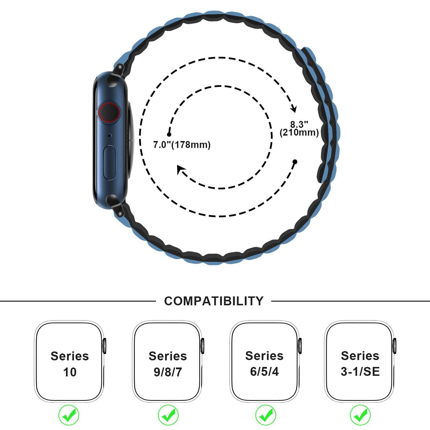 【全機種対応】Anlinser 交換用ストラップは互換性がありますApple Watch シリーズ10、シリーズ9、シリーズ8、シリーズ 7、シリーズ 6 シリーズ 5 シリーズ 4 シリーズ 3 シリーズ 2 シリーズ 1 SE 42mm 41mm 40mm 38mm 全モデル、7.0 インチから 8.1 インチ (178mm-206mm) までの手首に適しています