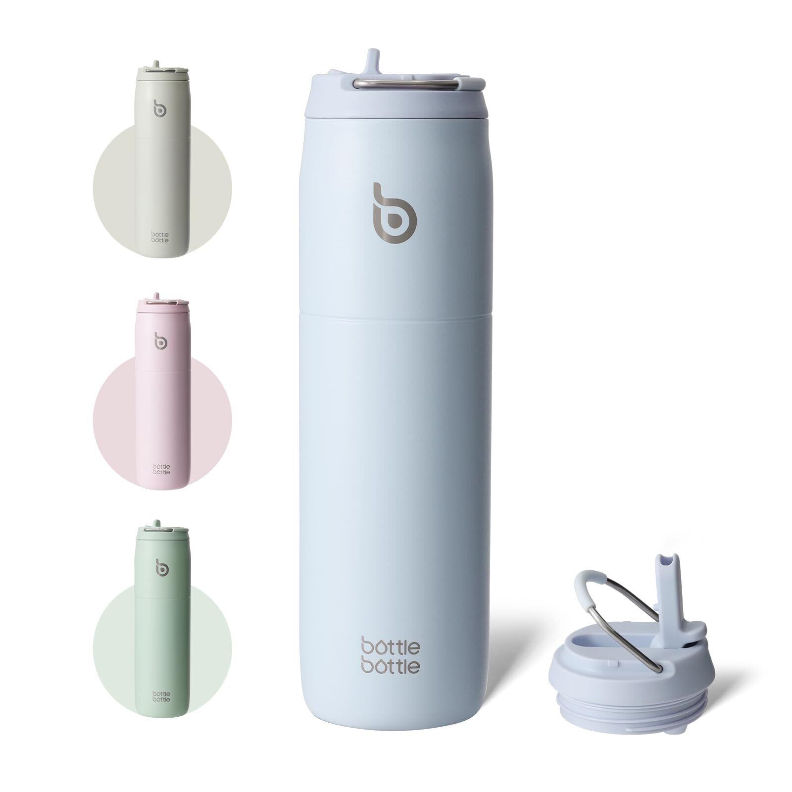 BOTTLE BOTTLE 水筒 1リットル 大容量 1000ml ストロー付き 直飲み 保温保冷 真空断熱 子供 大人 持ち手付き おしゃれ 1L ボトル ステンレス 魔法瓶 二重構造 女の子 男の子 持ち運び スポーツ アウトドア ライトブルー