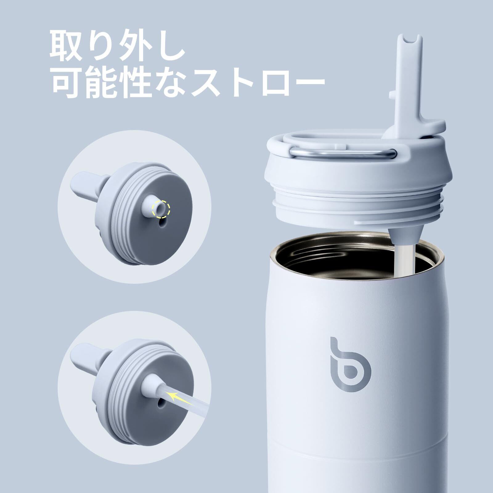 【在庫セール】BOTTLE BOTTLE 水筒 1リットル 大容量 1000ml ストロー付き 直飲み 保温保冷 真空断熱 子供 大人 持ち手付き おしゃれ 1L ボトル ステンレス 魔法瓶 二重構造 女の子 男の子 持ち運び スポーツ アウトドア ライトブルー