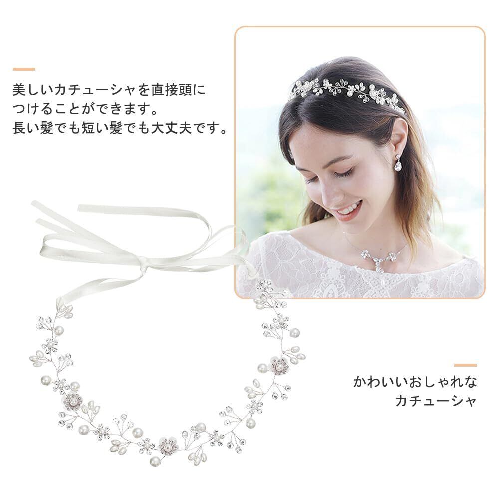 【在庫セール】サムコス 髪飾り 花 パール 花かんむり リボン ホワイト ヘッドドレス クリスタルビーズ 花冠 ヘアアクセサリー 結婚式 発表会 披露宴 卒業式 パーティー ダンス 和装 撮影 写真 子供 大人用 (A,シルバー)