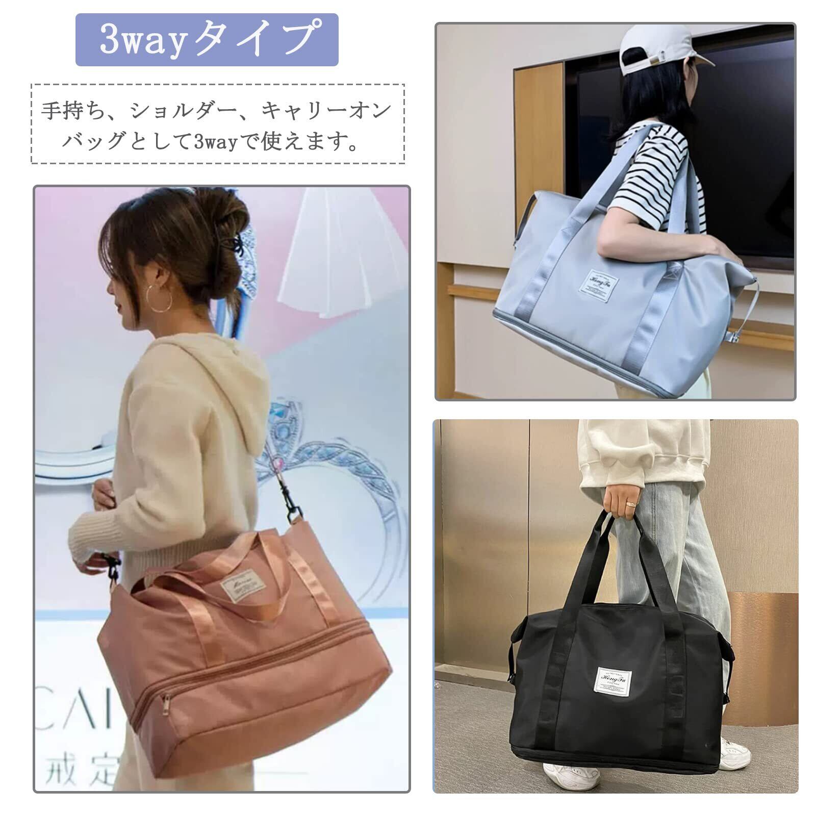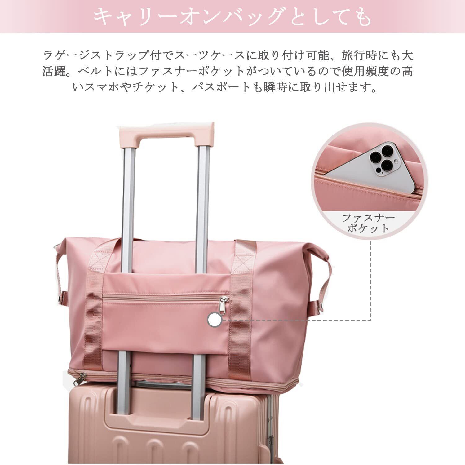 Sitengle 旅行バッグ 大容量 拡張 ボストンバッグ トラベル 旅行カバン マザーズバッグ 防水 肩掛け スポーツバッグ キャリーバッグ 2泊3日 (ピンク)