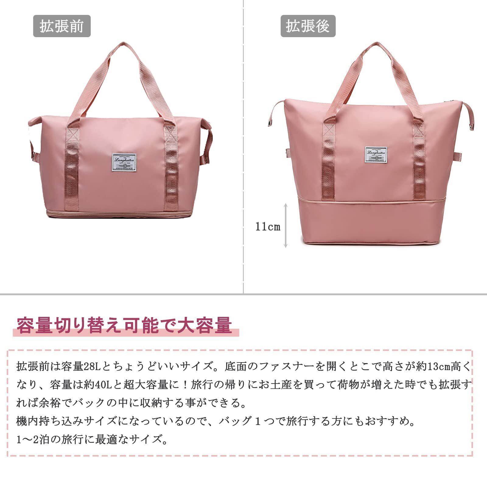 【特価商品】Sitengle 旅行バッグ 大容量 拡張 ボストンバッグ トラベル 旅行カバン マザーズバッグ 防水 肩掛け スポーツバッグ キャリーバッグ 2泊3日 (ピンク)