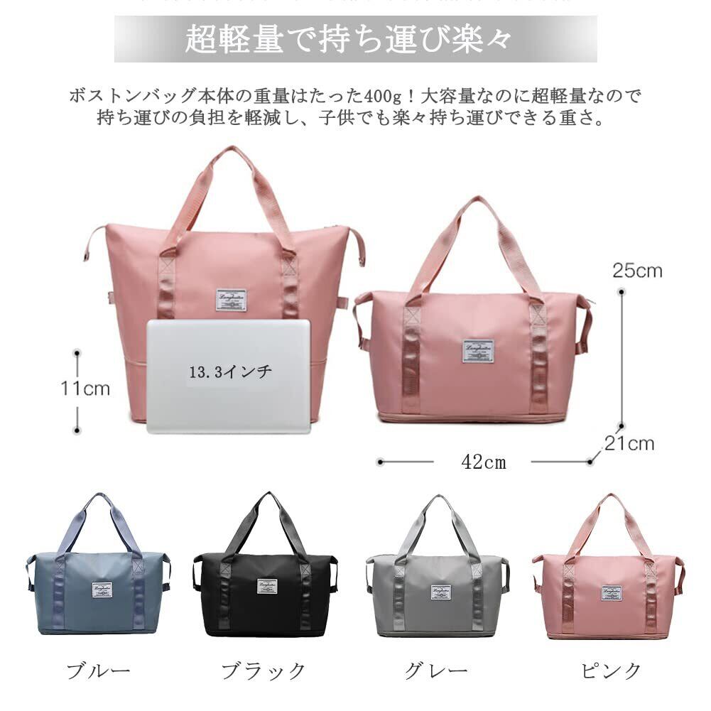 【超軽量で持ち運び楽々】 ボストンバッグ本体の重量はたった400g!大容量なのに超軽量なので持ち運びの負担を軽減し、子 供でも楽々持ち運びできる重さ。