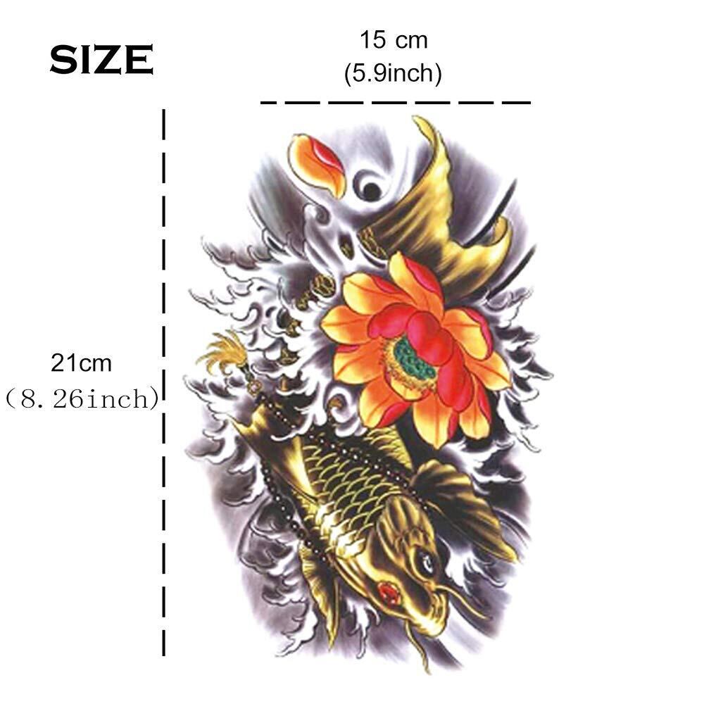 Yesallwas タトゥーシール 鯉 蓮の花 和柄 入れ墨シール リアル 大判 防水 長持ち 和彫り 刺青シール ボディーシール 子供 メンズ レディース Tatoo 15x21CM (A.10枚セット)