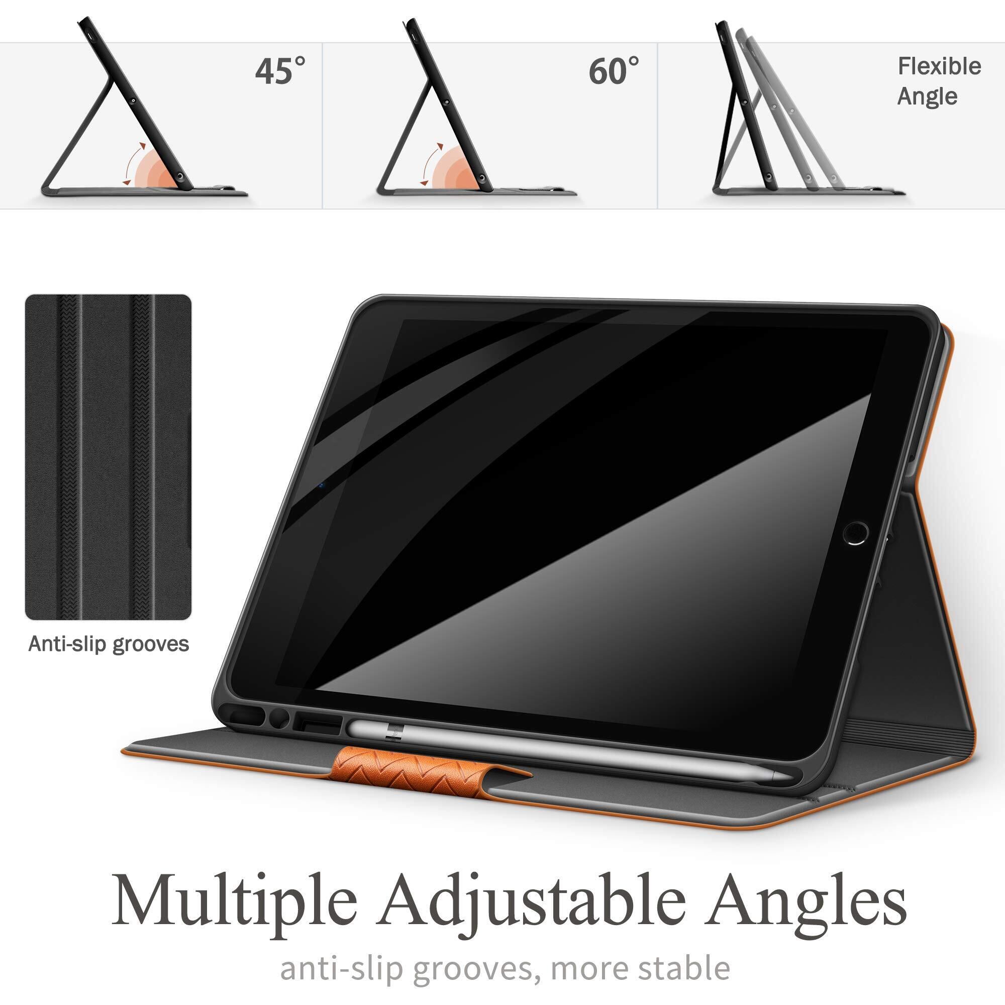 auaua iPad 9/8/7世代 ケース PUレザー ペン収納 iPad 10.2 ケース(2021/2020/2019) iPad 7世代 ケース兼用 手帳型 ひび割れ防止 耐衝撃 オートスリープ&スタンド機能付き 全面保護 iPad第7/8/9世代 (ブラウン)