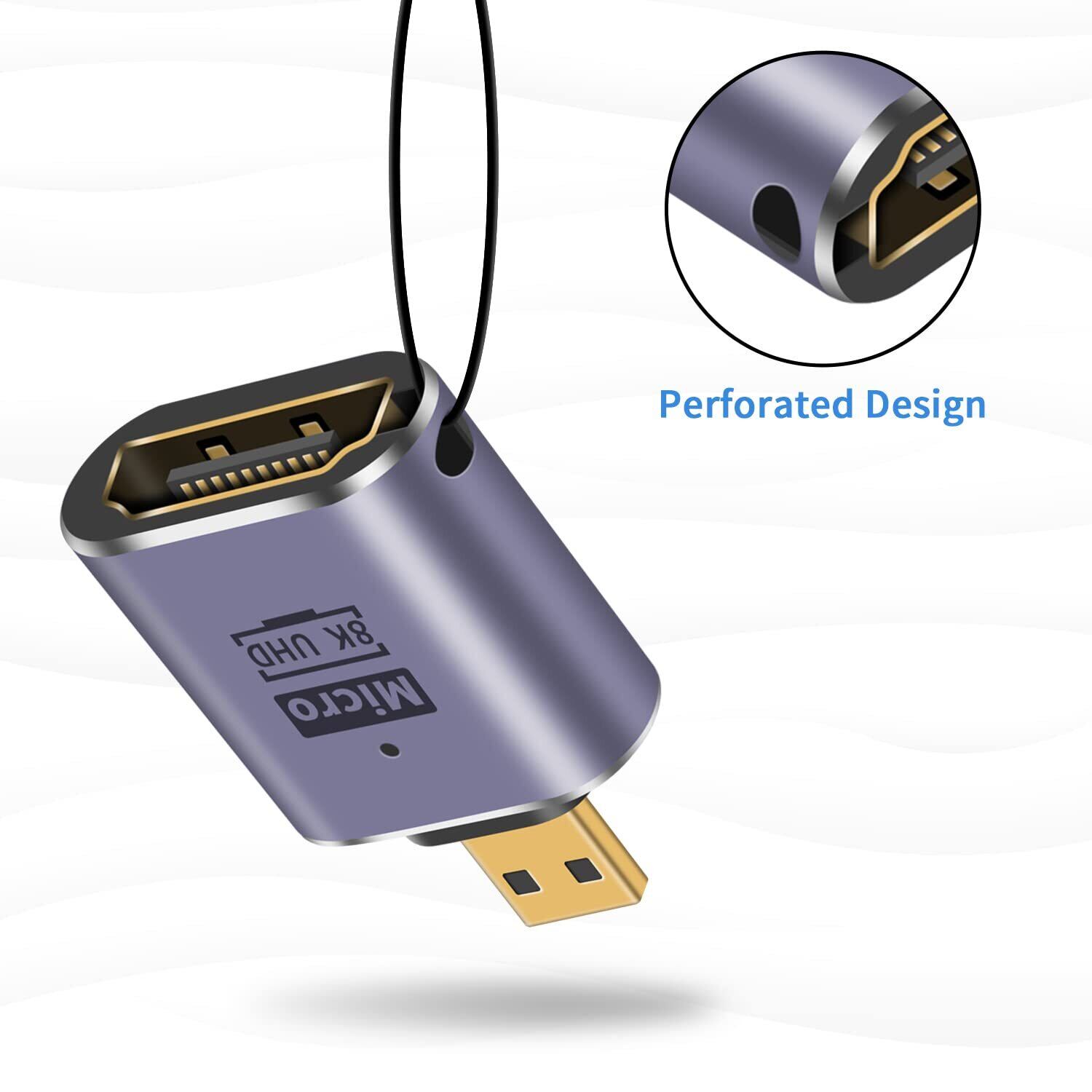 HDMI 2.1 to micro hdmi延長アダプタ LEDライトと穴のあいたデザインで 高級感を演出する。ポケットに入るコンパクトサイズで持ち運びやすく、旅行にも便利です。