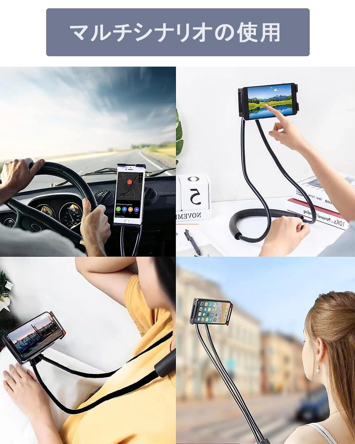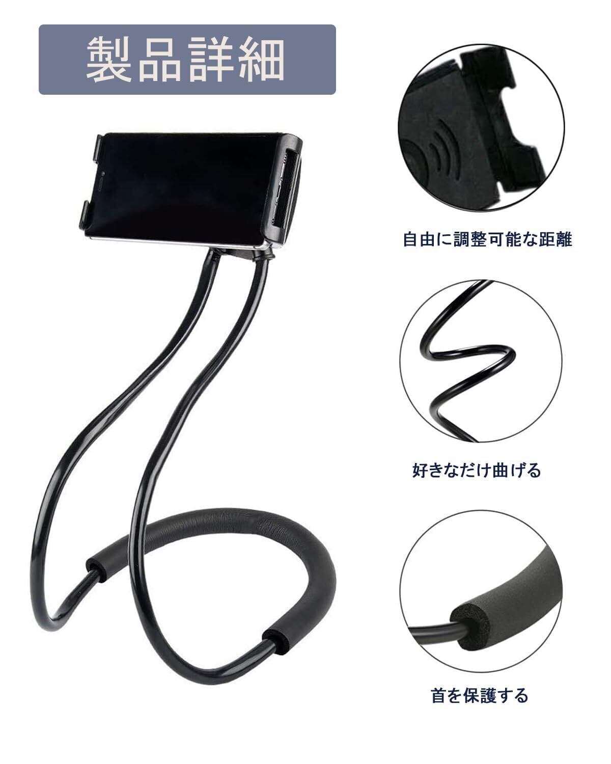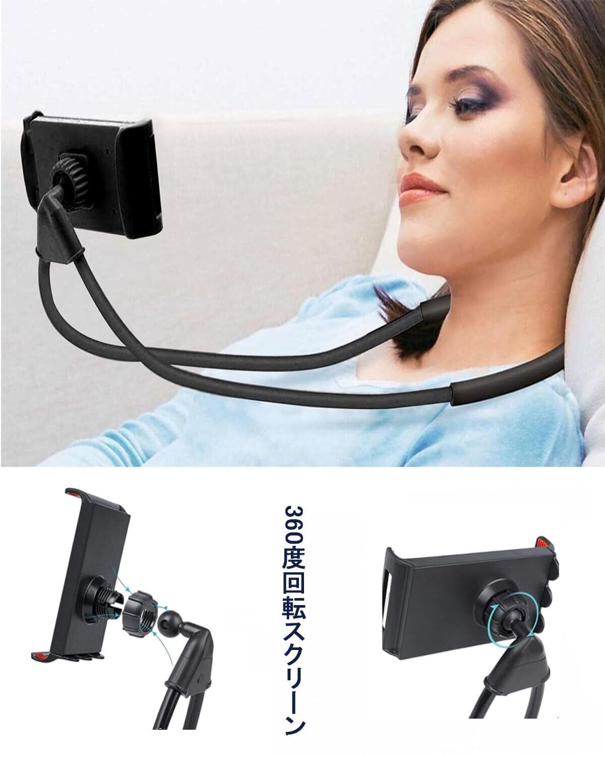 【在庫処分】YINKE 首掛け式 携帯スタンド スマホホルダー 首かけ 車載ホルダー 高級 フレキシブルアーム 寝ながらベット用 多用途 万能 便利 360度自由に調整できます 任意変形が 両手フリー phone/kindle/ipad に対応(ブラック)