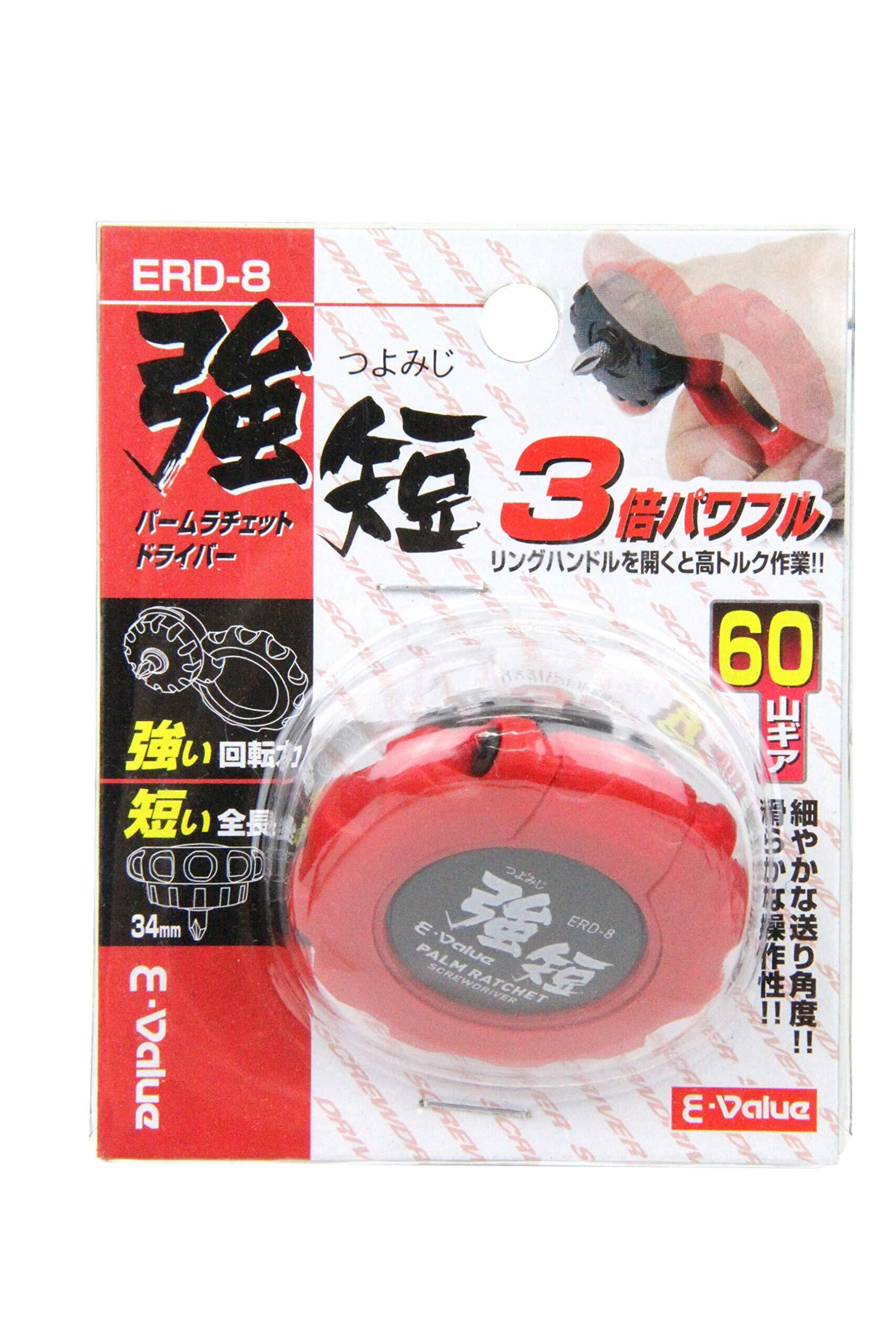イーバリュー(E-Value) パームラチェットドライバー ERD-8 全高34mm ギア数60山 +No.2ビット付